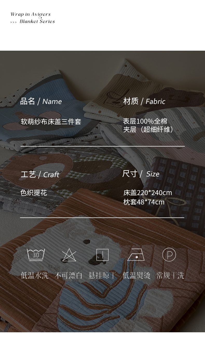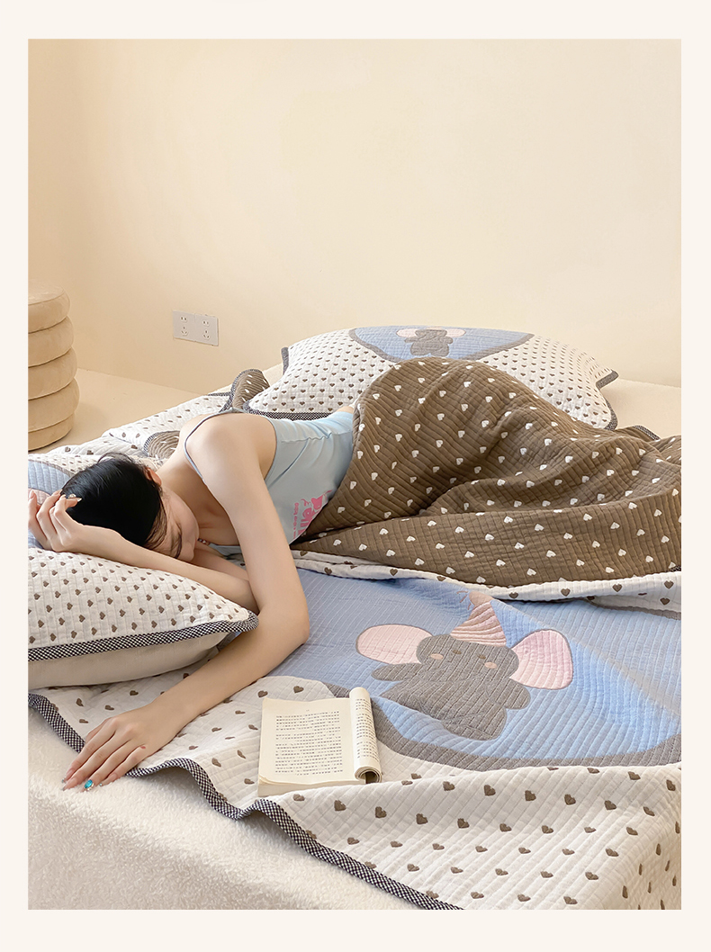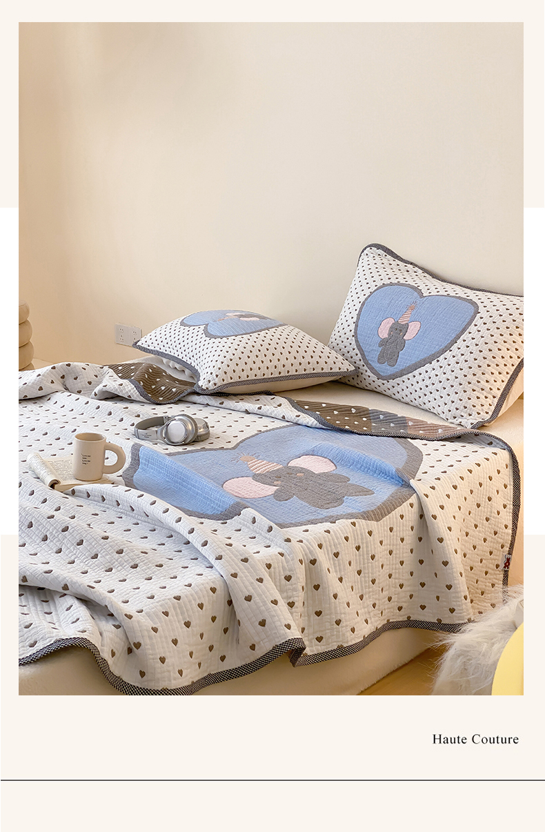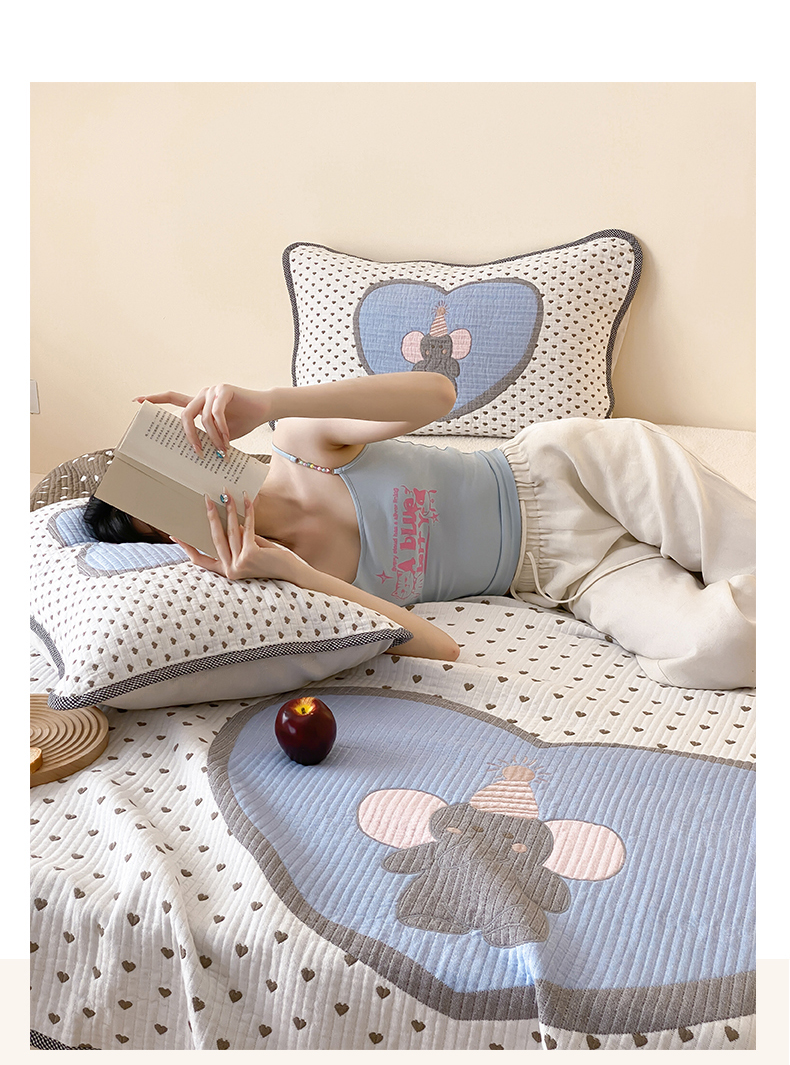 麻依 2025新款软萌纱布床盖三件套(控价:229元) 心心小象