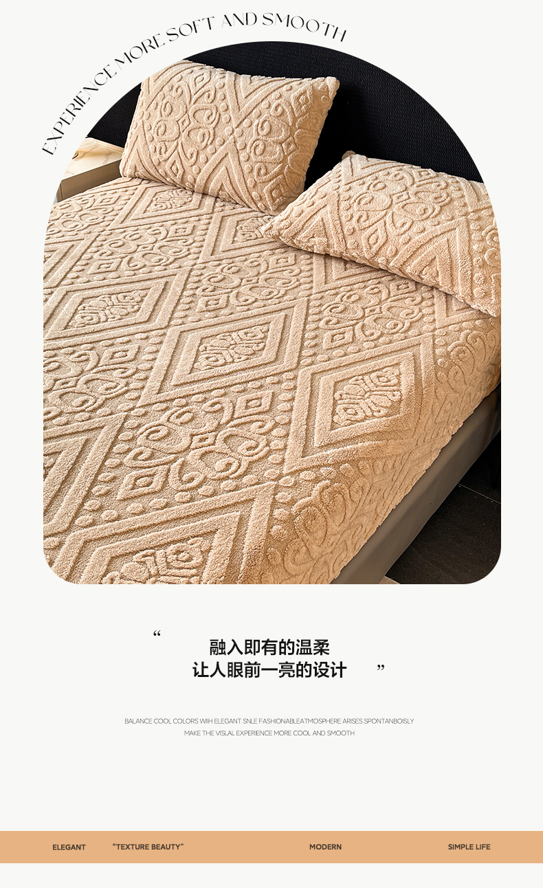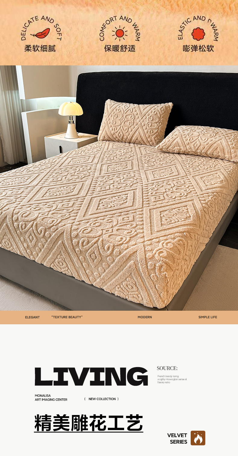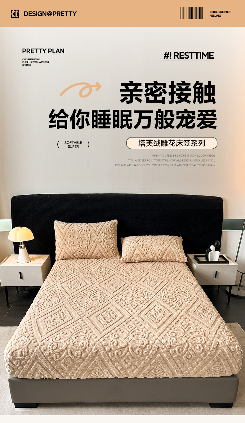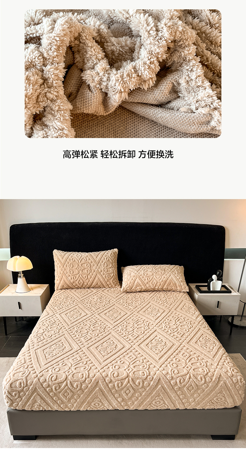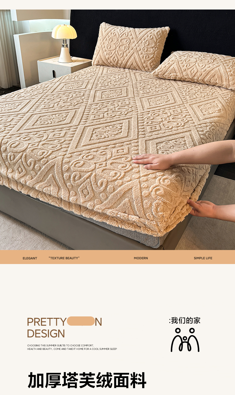 • 91家纺网 家纺一手货源 找家纺 米瑞娜 2025秋冬新款塔芙绒床笠三件套跨境单床笠外贸单品现货尺寸齐全 欧式床笠-卡其