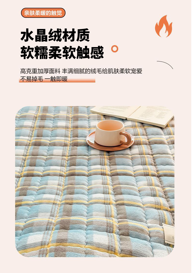 商品名称:希廷顿 2025新款保暖水晶绒宿舍床护垫 奶咖色