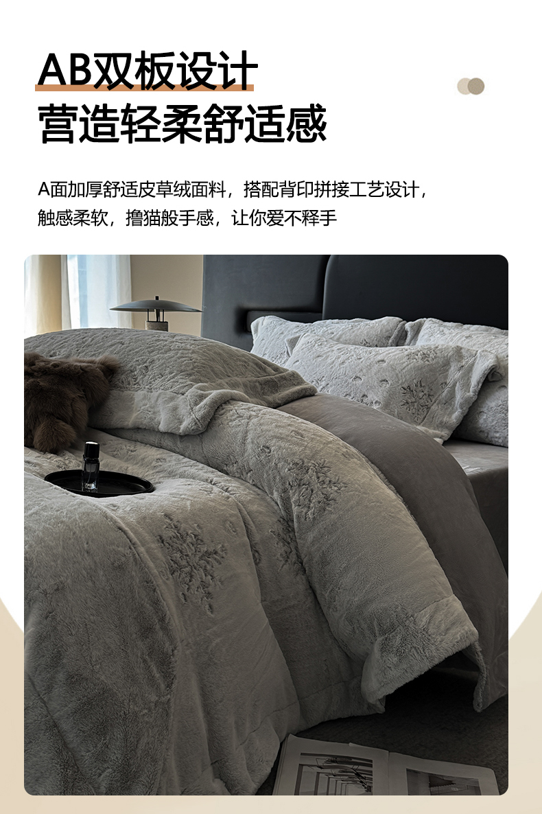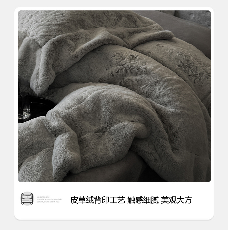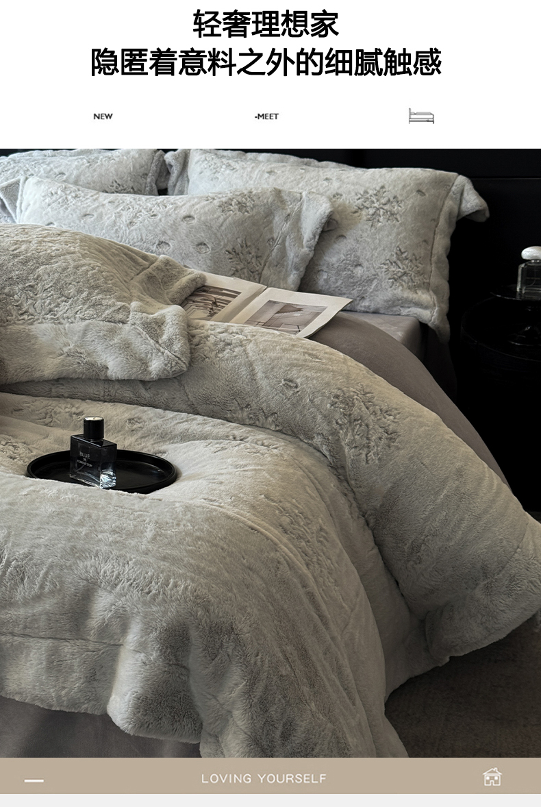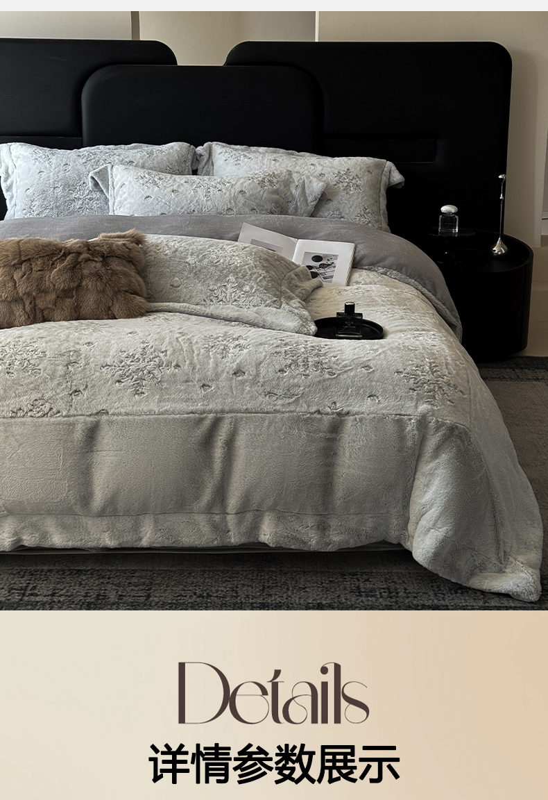 当前位置: 91家纺网 > 商品网购 > 床品套件 > 四件套 > 其它四件套 > 丞音家纺 2025秋冬新款A类轻奢皮草绒加厚水貂绒保暖牛奶绒床上用品珊瑚绒四件套床单被套 路易斯-高级灰