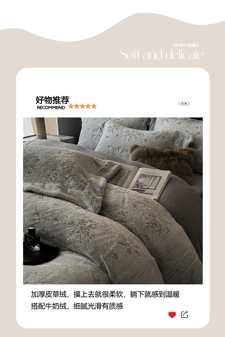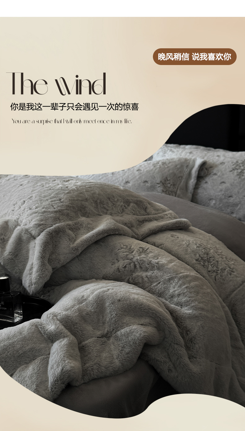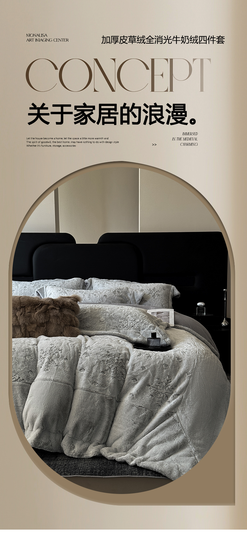 当前位置: 91家纺网 > 商品网购 > 床品套件 > 四件套 > 其它四件套 > 丞音家纺 2025秋冬新款A类轻奢皮草绒加厚水貂绒保暖牛奶绒床上用品珊瑚绒四件套床单被套 路易斯-高级灰