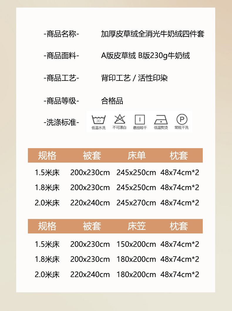 【床笠款】1.8四件套-被套200x230 | ¥230.00 |