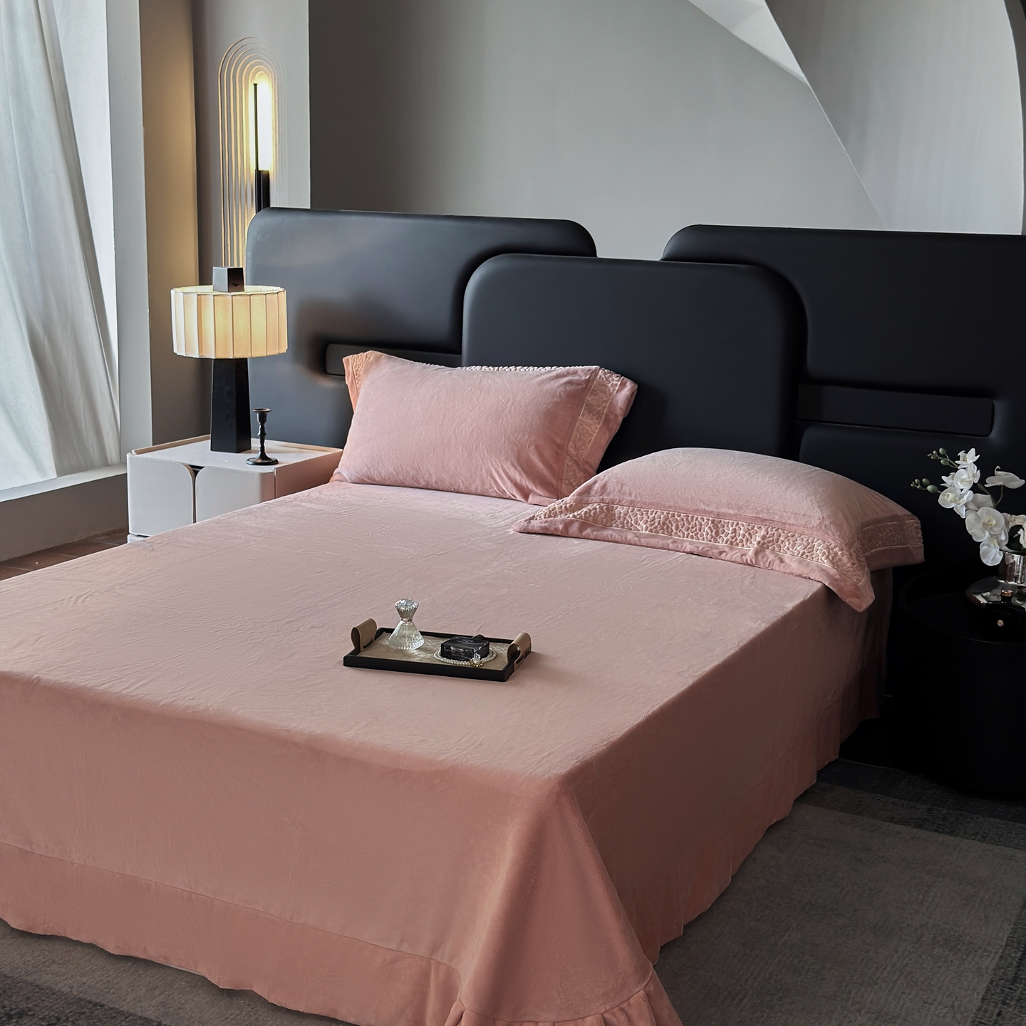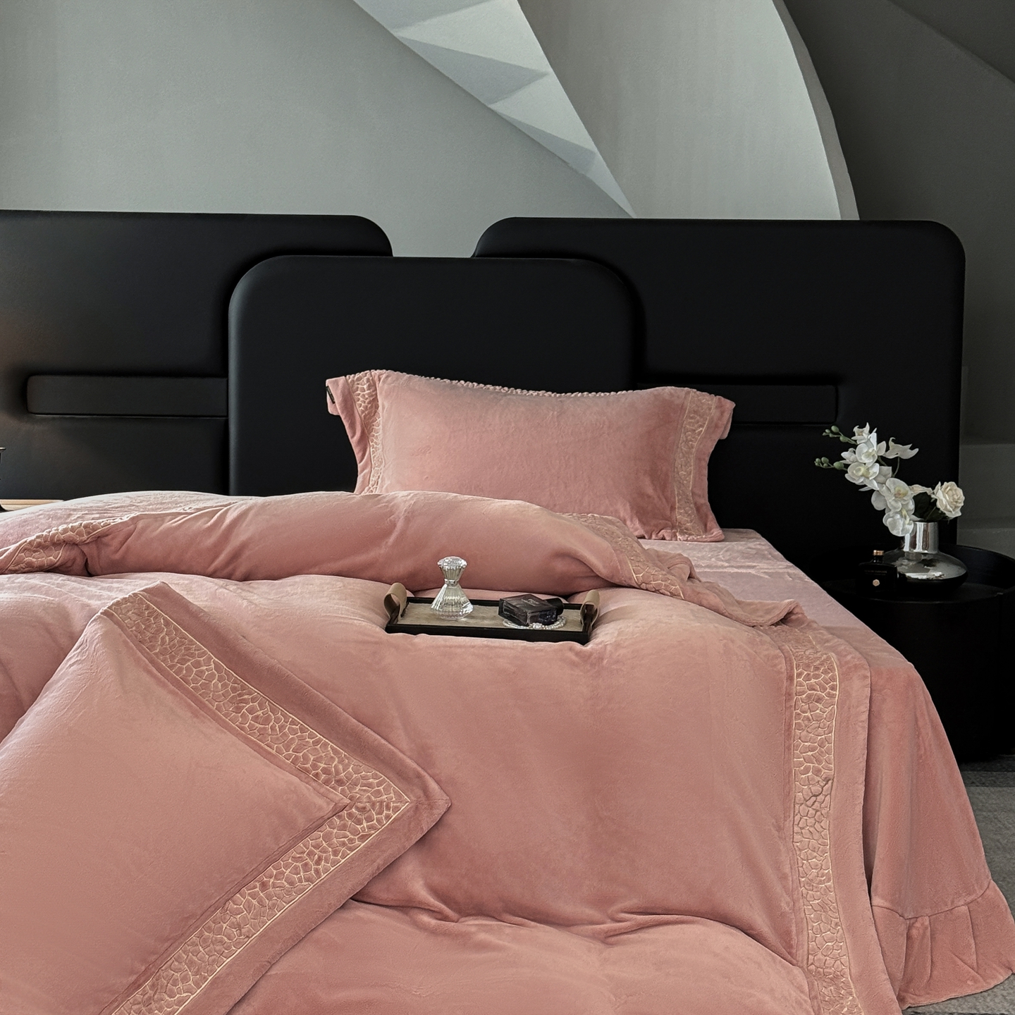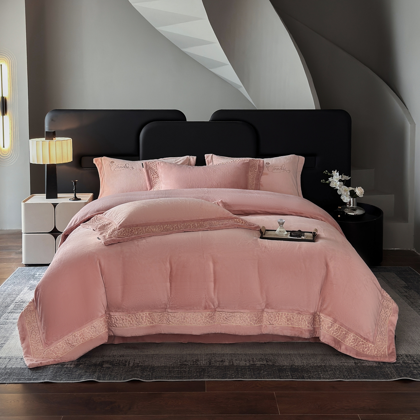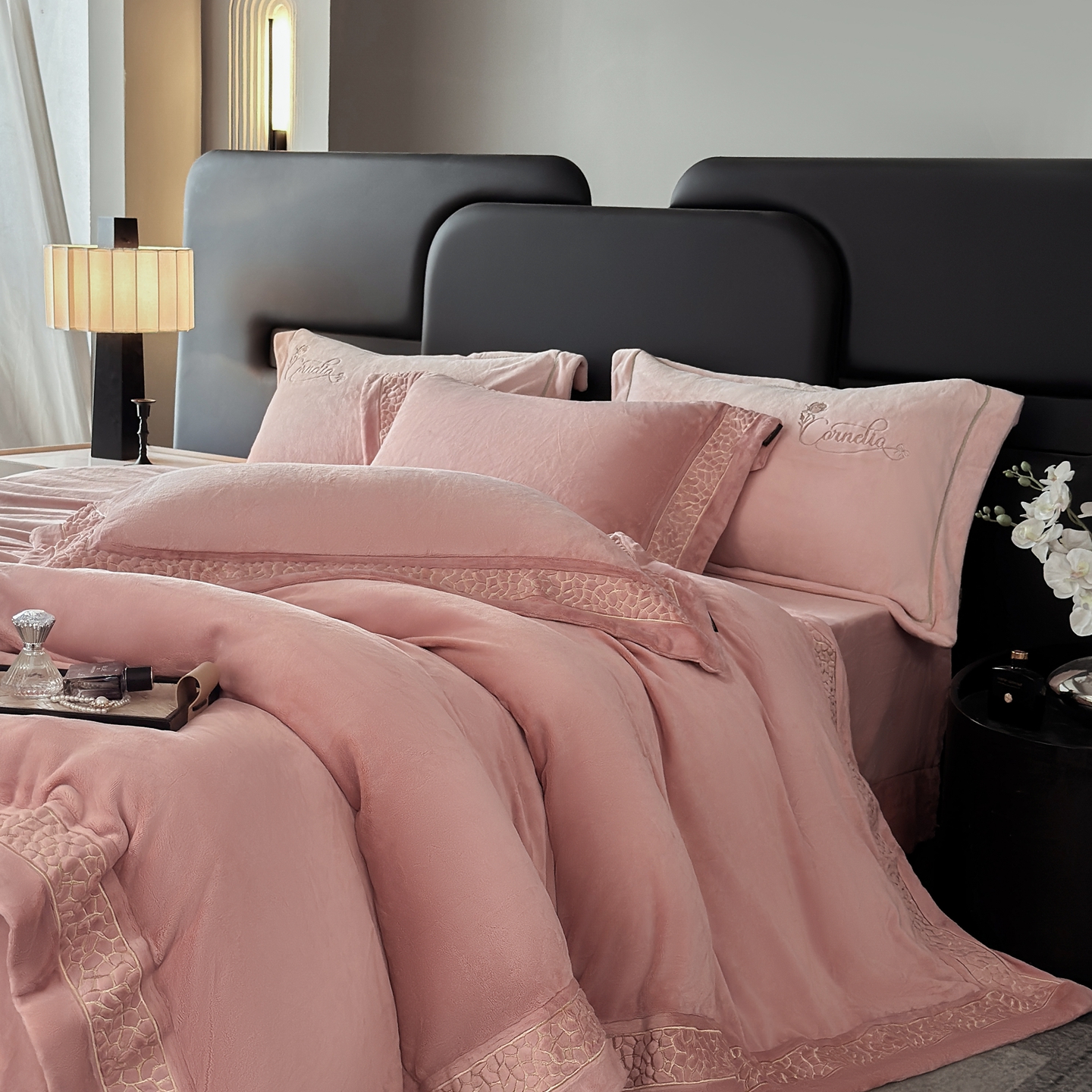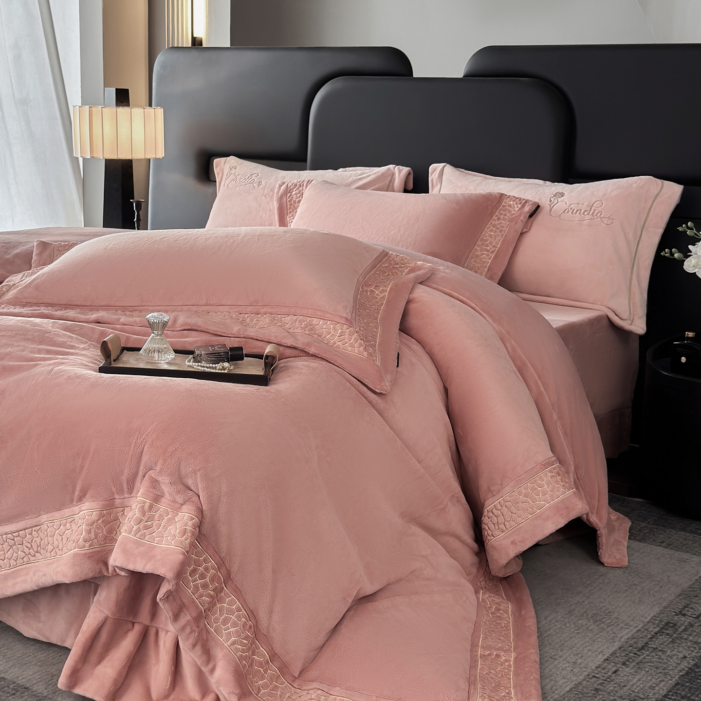 芯丝路枕业 2025新款暮野蚕丝绒四件套 暮野-月桃粉