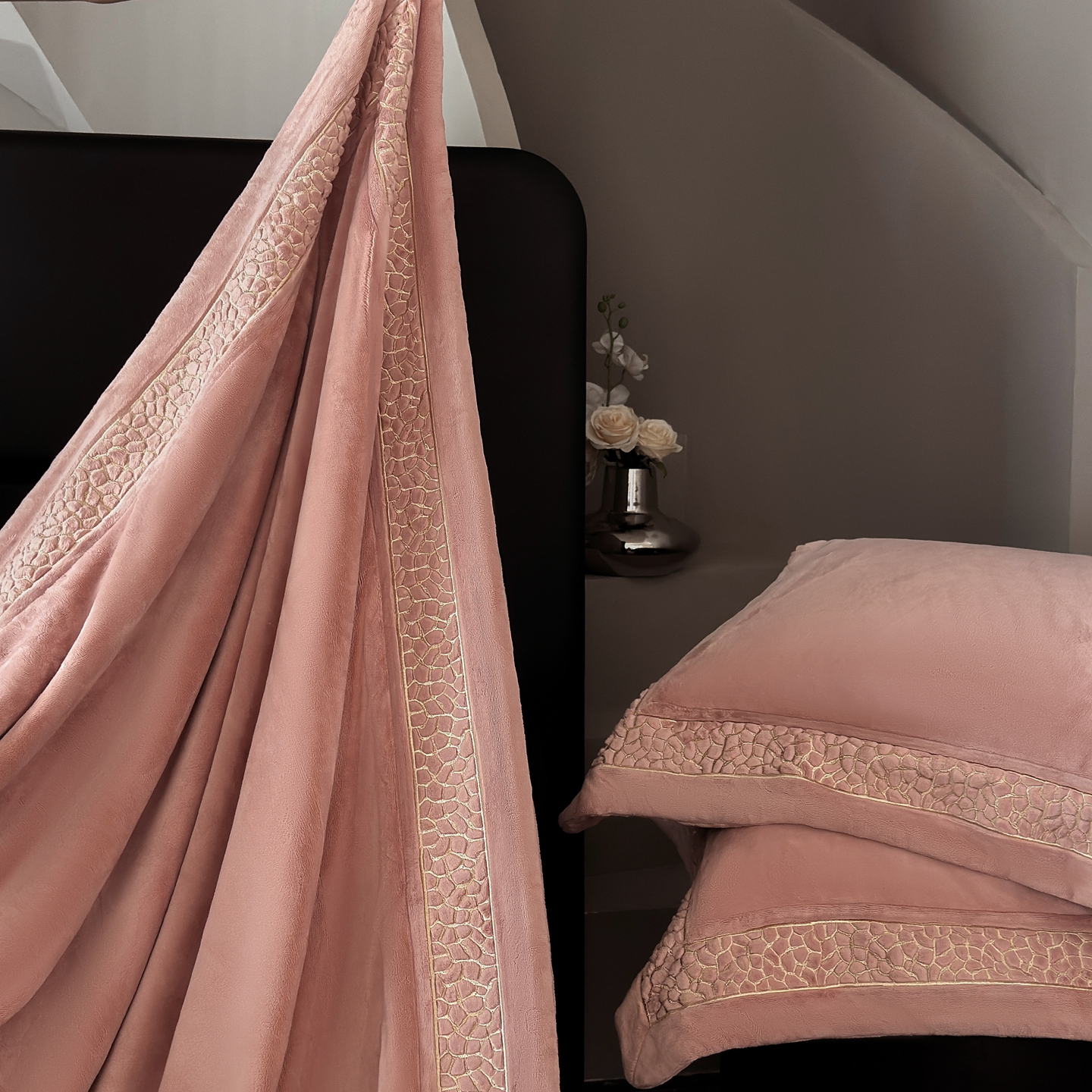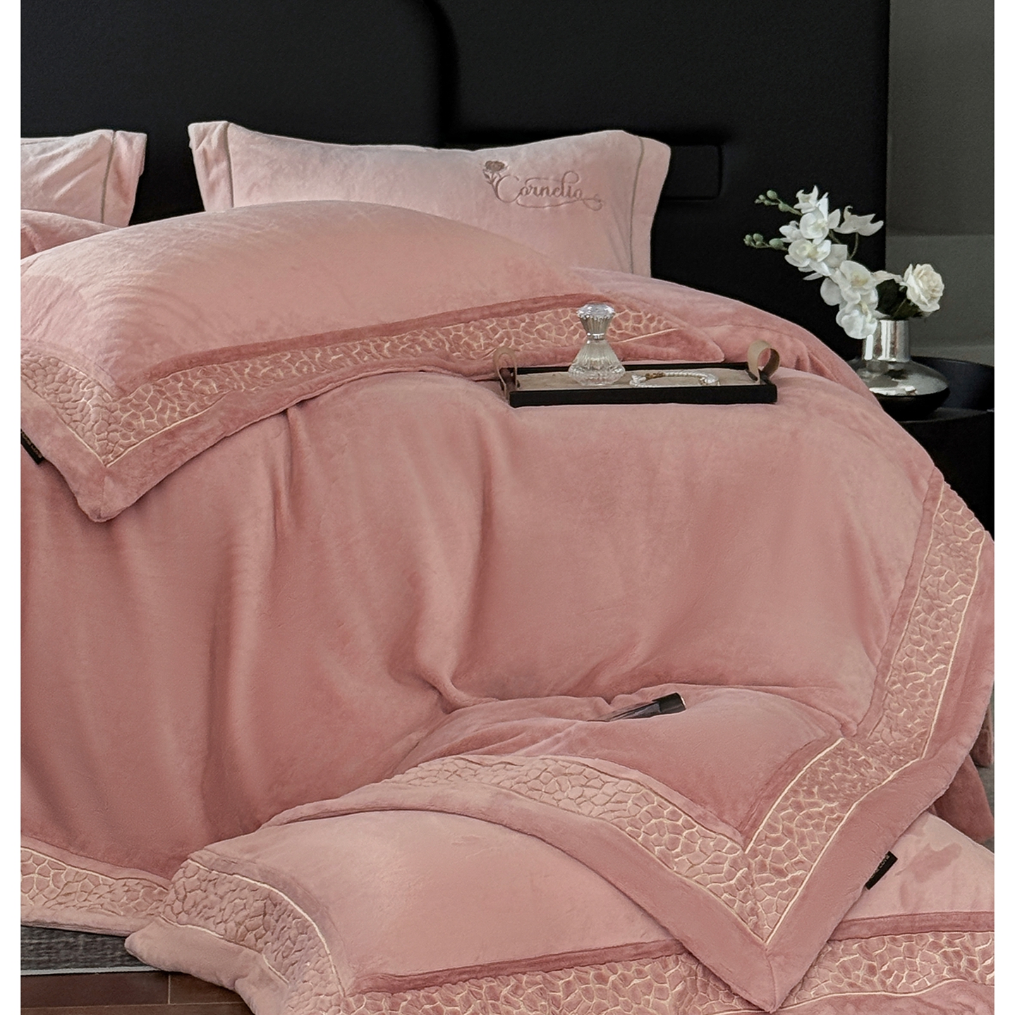 商品名称:芯丝路枕业 2025新款暮野蚕丝绒四件套 暮野-月桃粉