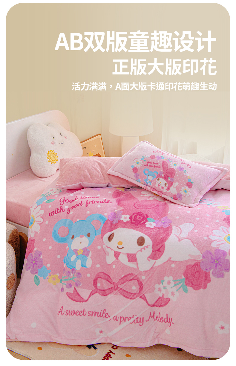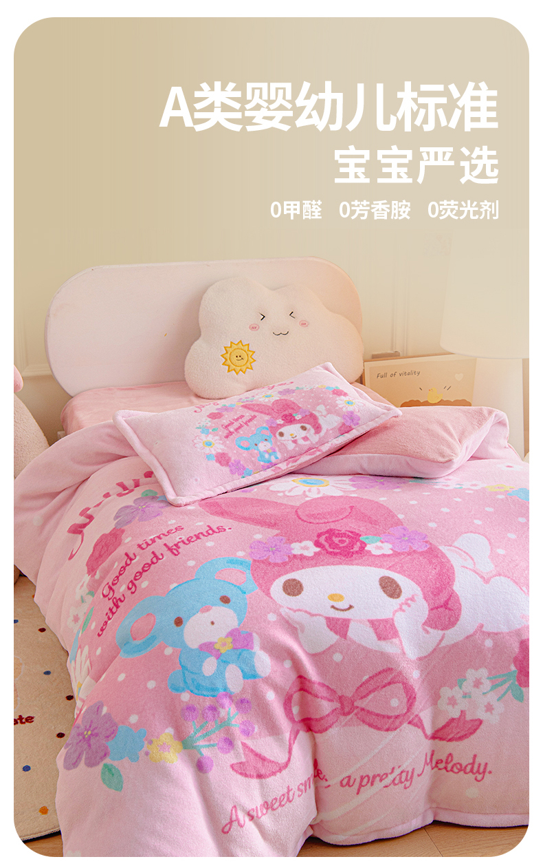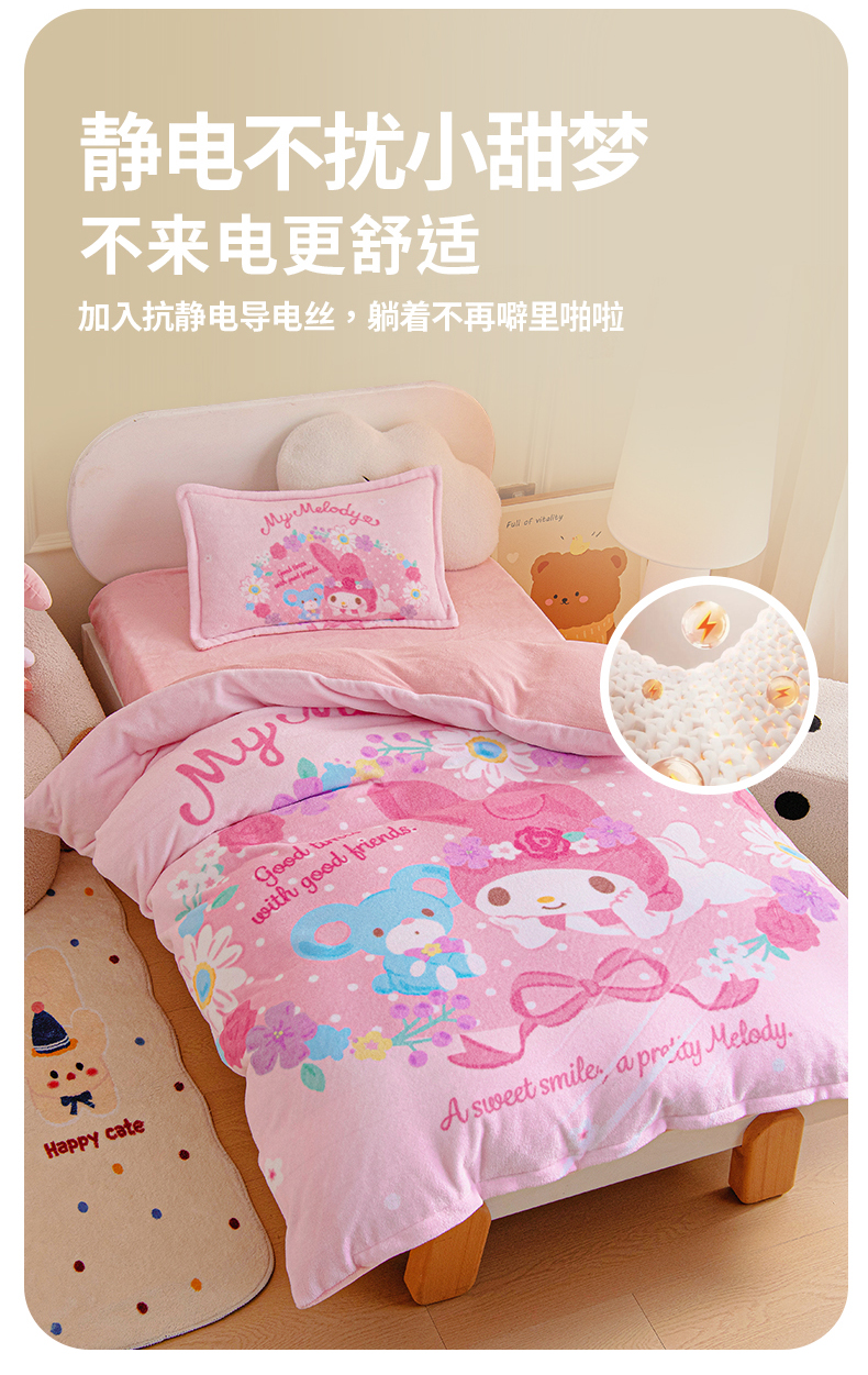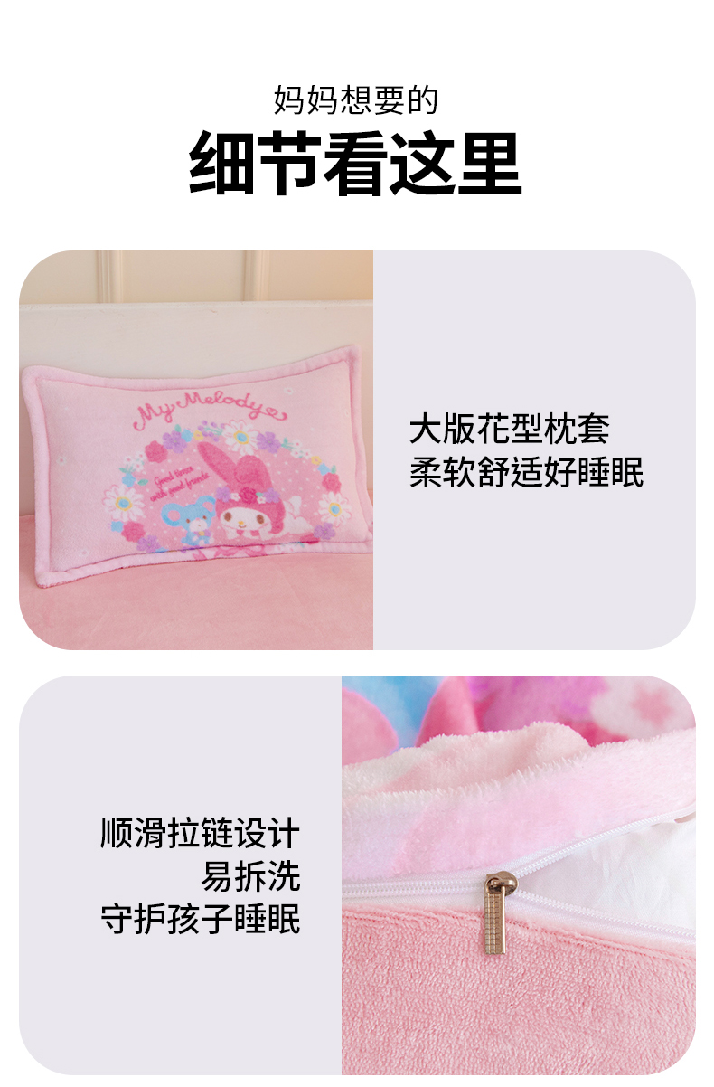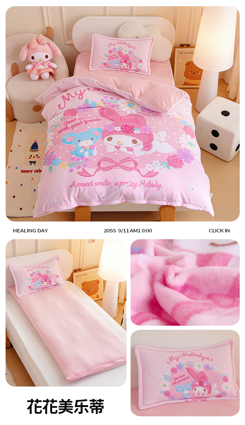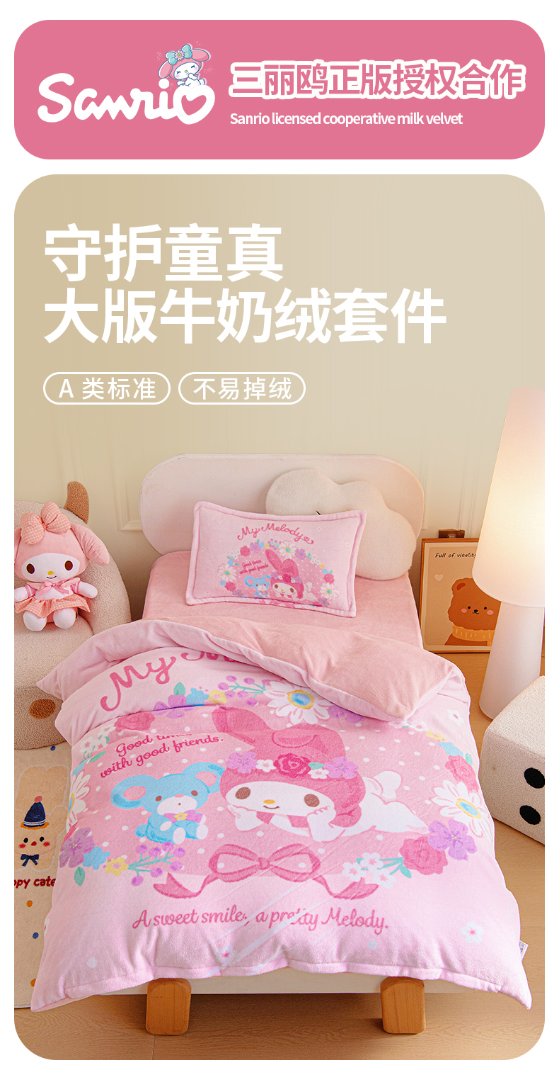 当前位置: 91家纺网 > 商品网购 > 床品套件 > 四件套 > 牛奶绒四件套 > 吉咪兔家纺 2025新款大版三丽鸥库洛米美乐蒂牛奶绒幼儿园被子三件套保暖被褥六件套 花花美乐蒂
