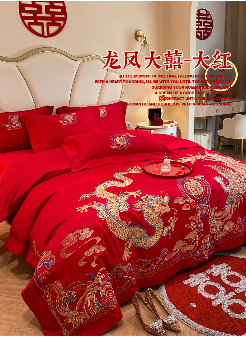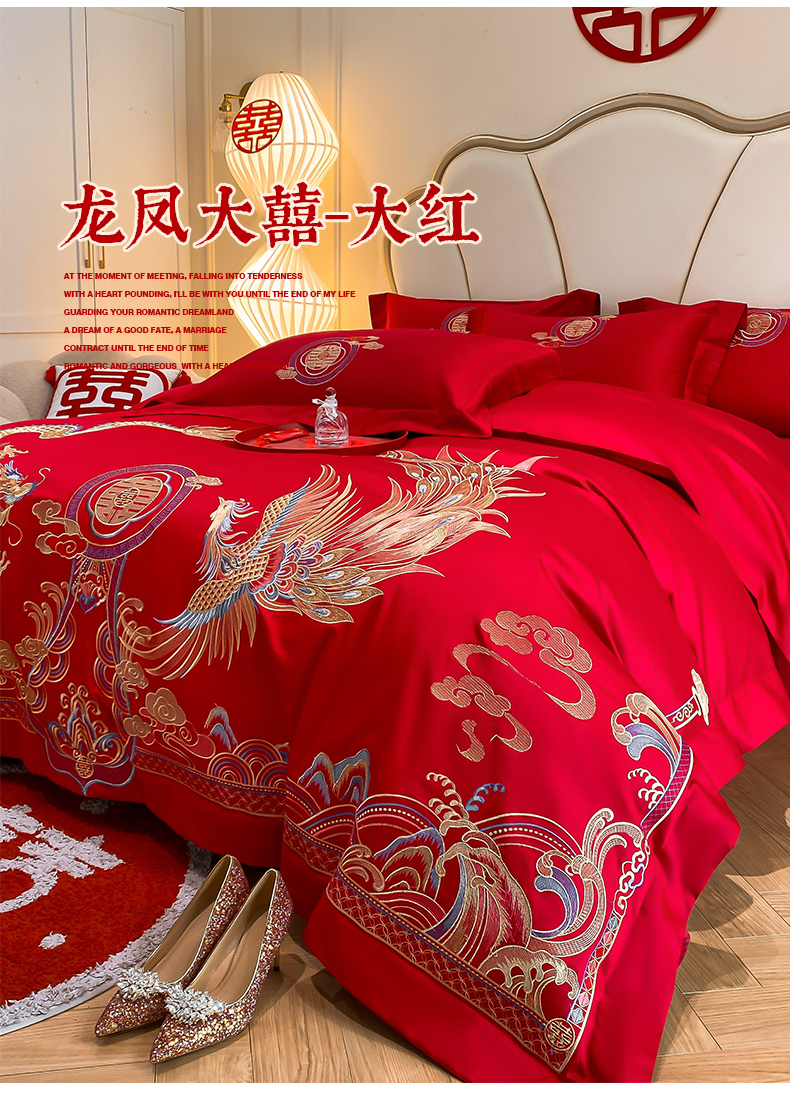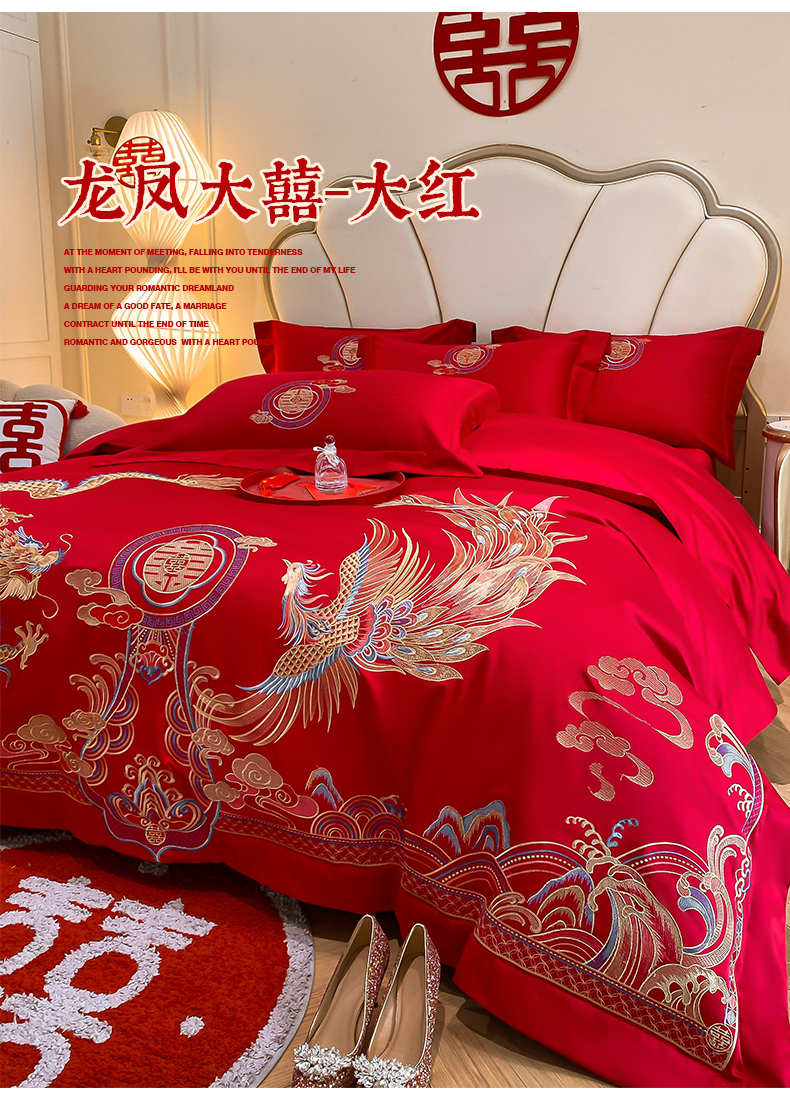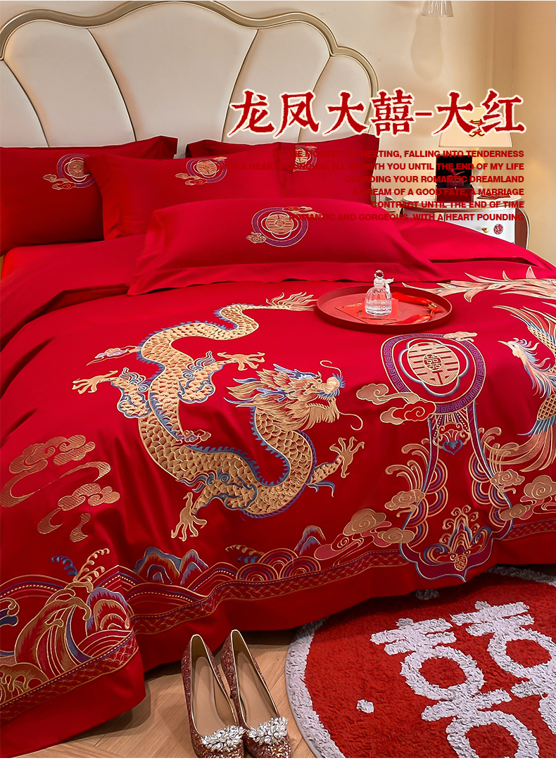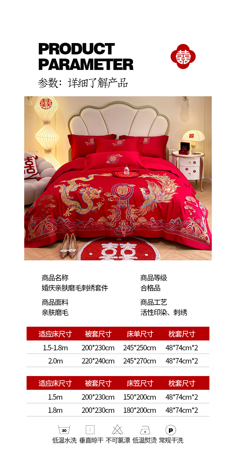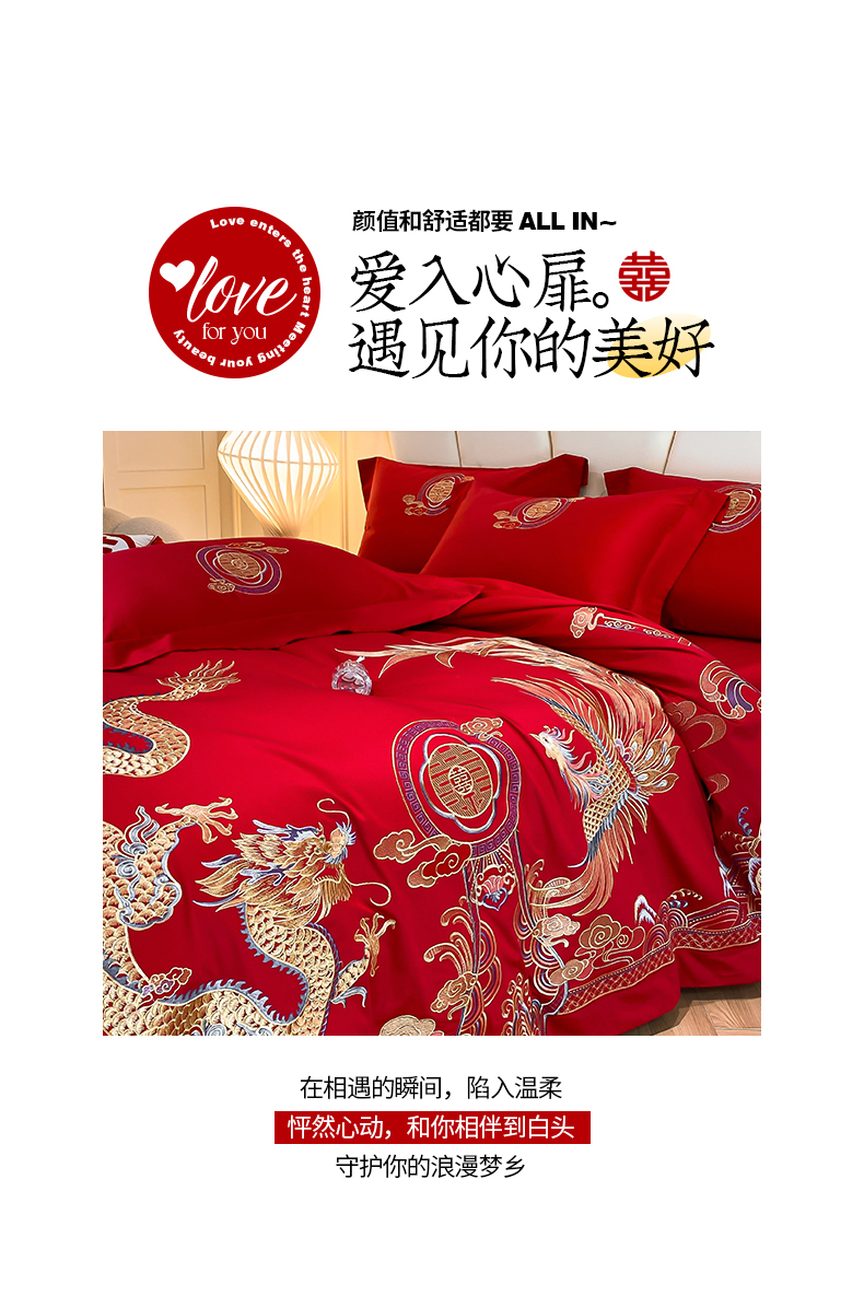 当前位置: 91家纺网 > 商品网购 > 床品套件 > 四件套 > 婚庆四件套 > 置顶家纺 2025新款亲肤磨毛刺绣婚庆四件套系列-棚拍 龙凤大囍-大红