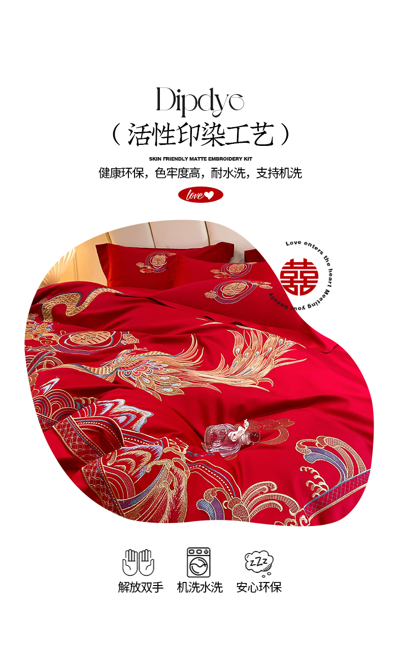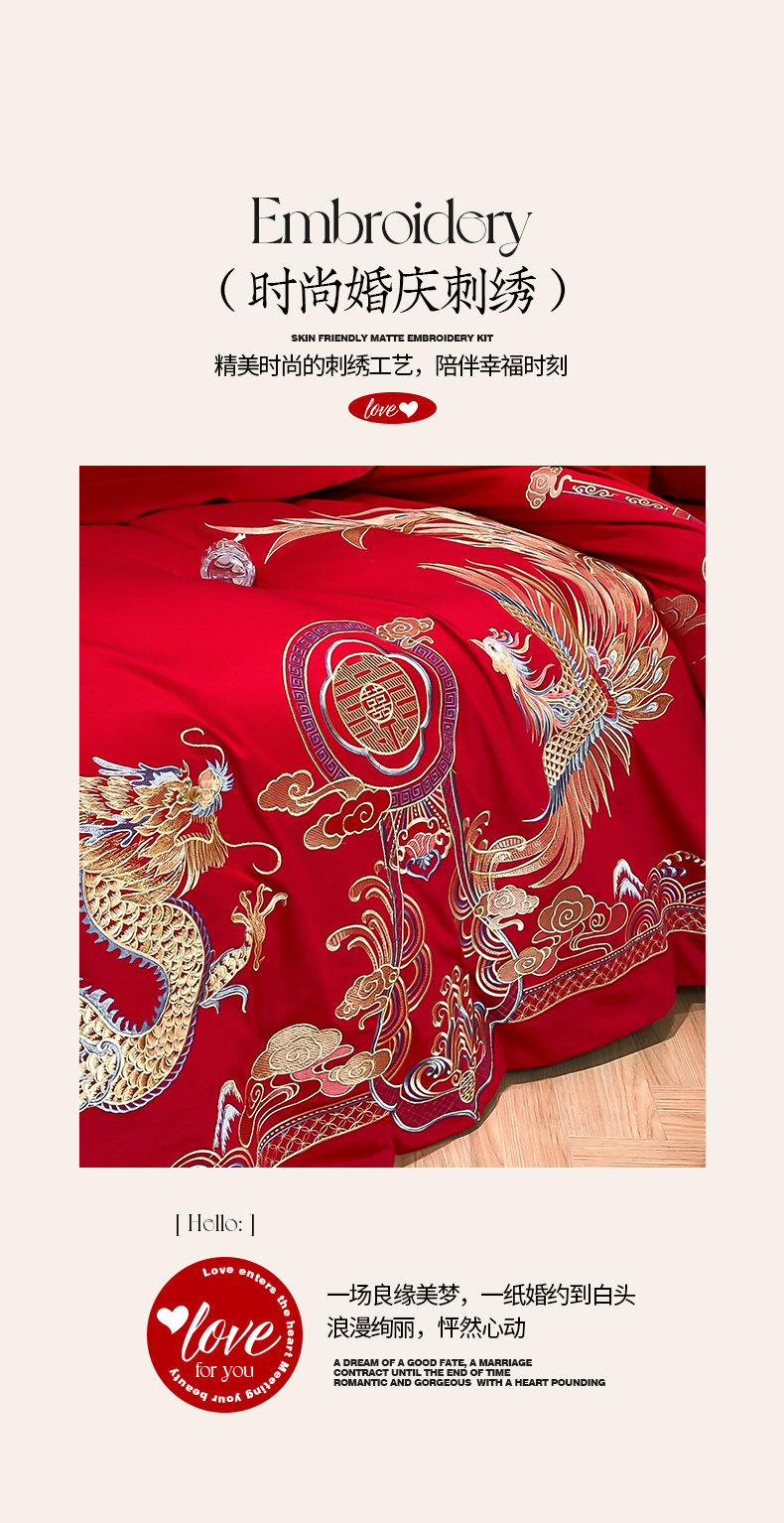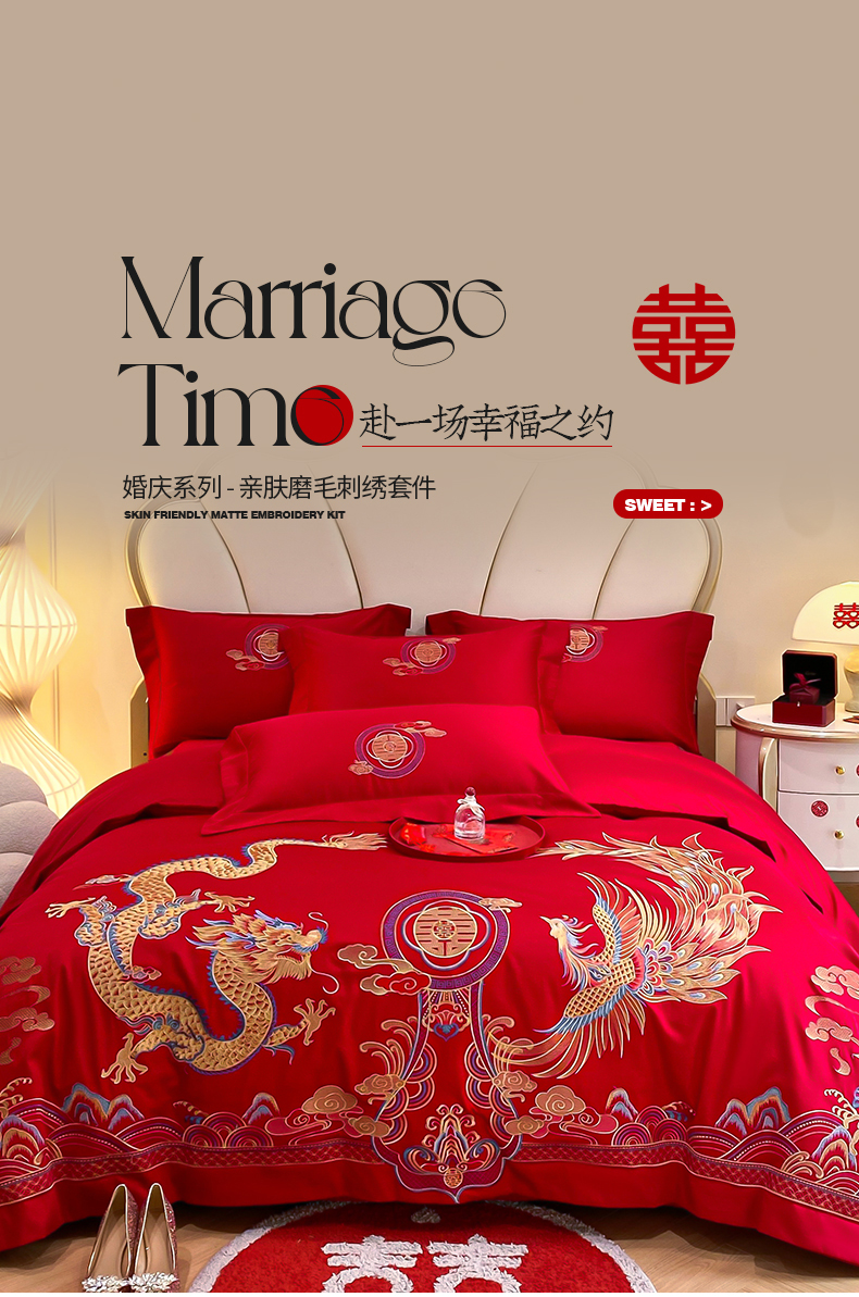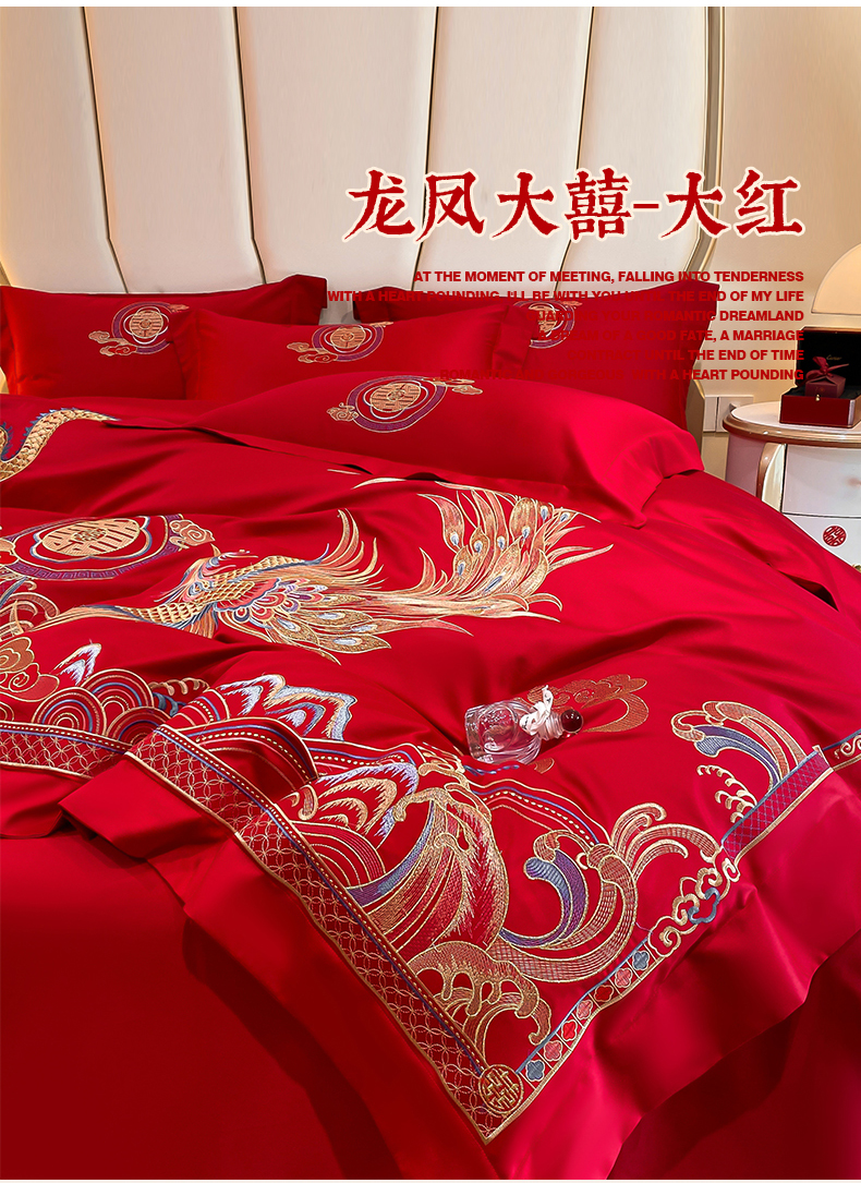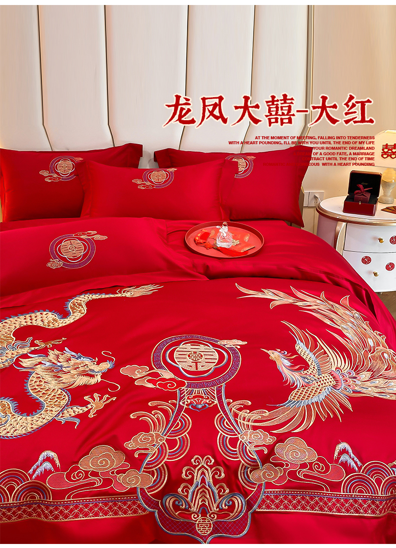当前位置: 91家纺网 > 商品网购 > 床品套件 > 四件套 > 婚庆四件套 > 置顶家纺 2025新款亲肤磨毛刺绣婚庆四件套系列-棚拍 龙凤大囍-大红