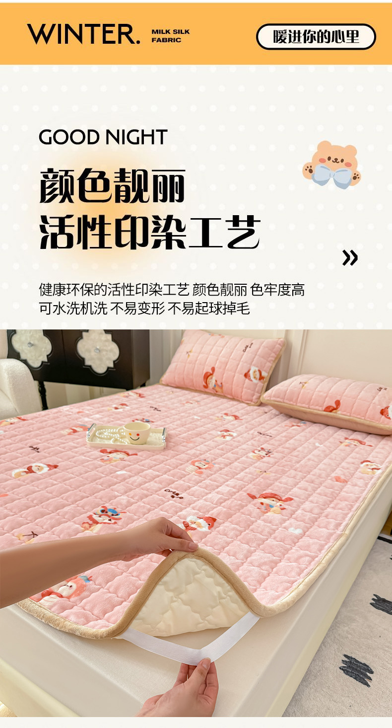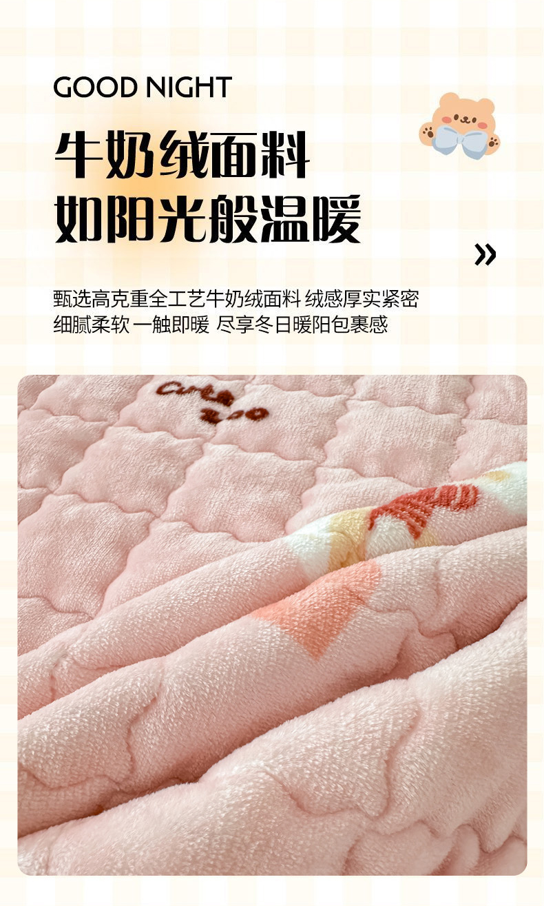 (总)棉森家纺 2025新款亲肤舒适高克重牛奶绒夹棉床褥床垫垫子,爱相随,爱心蓝色,爱心奶白,动物园,豆绿,灰色,玫瑰兔,西瓜红