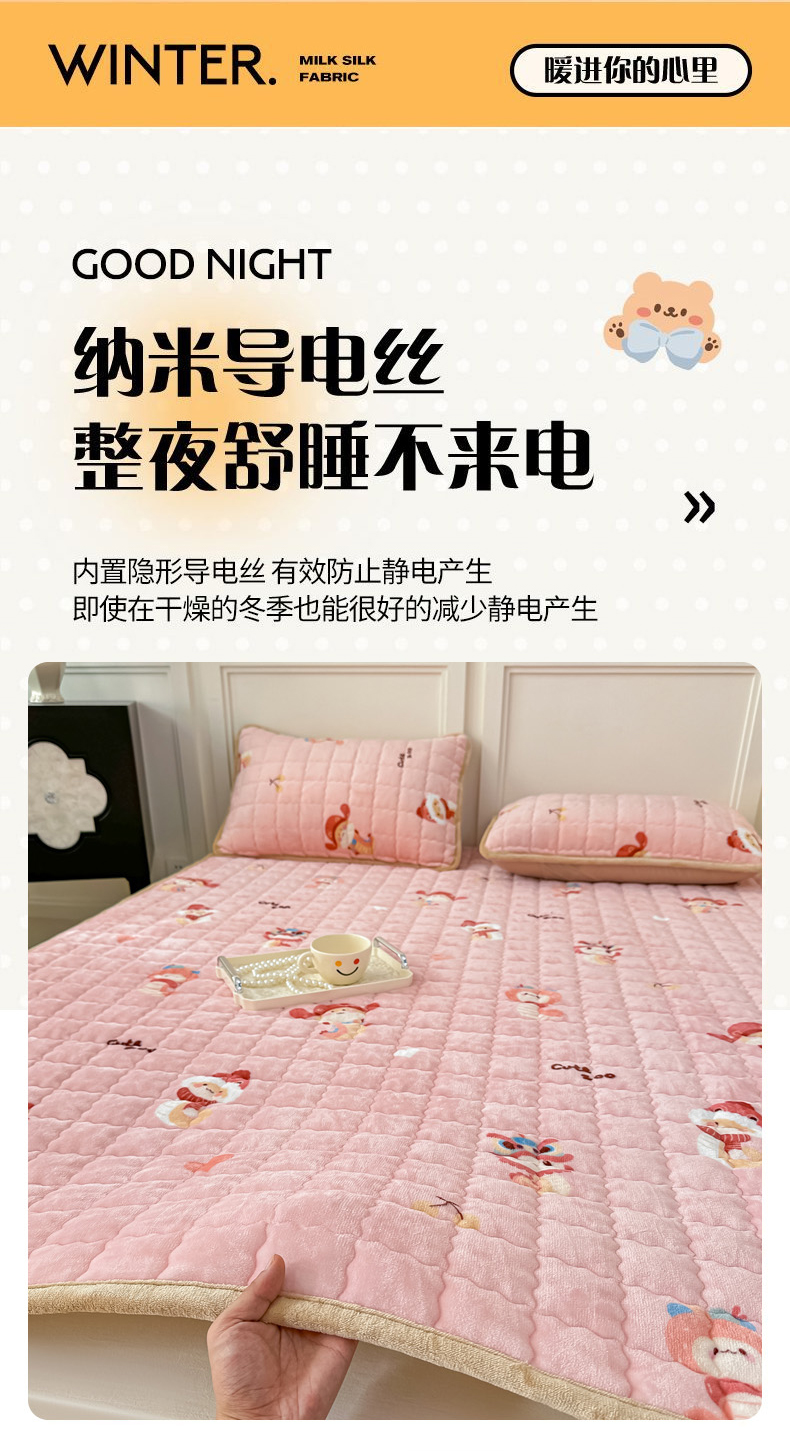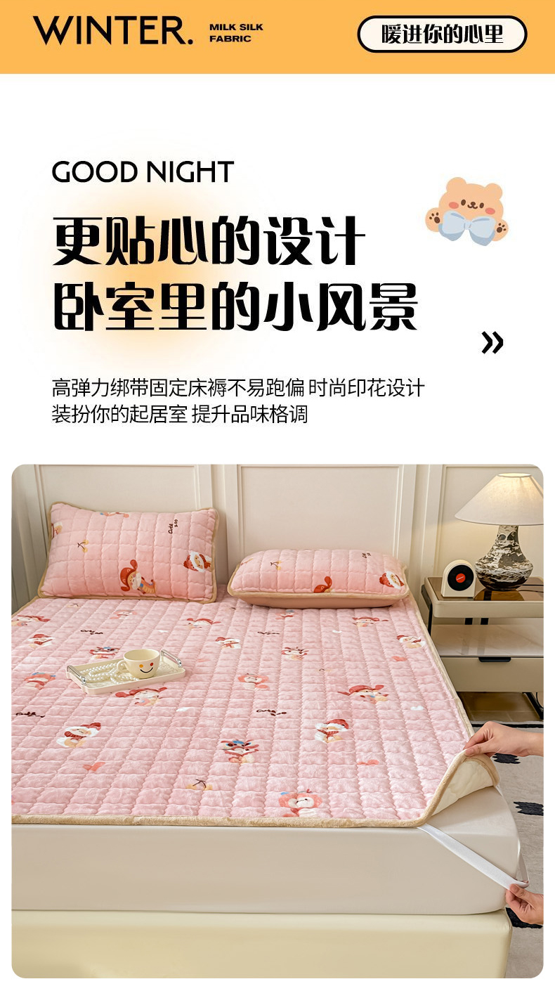 商品名称:棉森家纺 2025新款亲肤舒适高克重牛奶绒夹棉床褥床垫垫子 爱相随