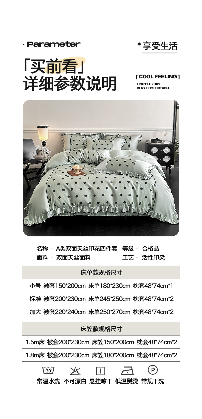 当前位置: 91家纺网 > 商品网购 > 床品套件 > 四件套 > 水洗棉四件套 > 置顶家纺 2025新款波点双面水洗天丝四件套 波点-水蓝