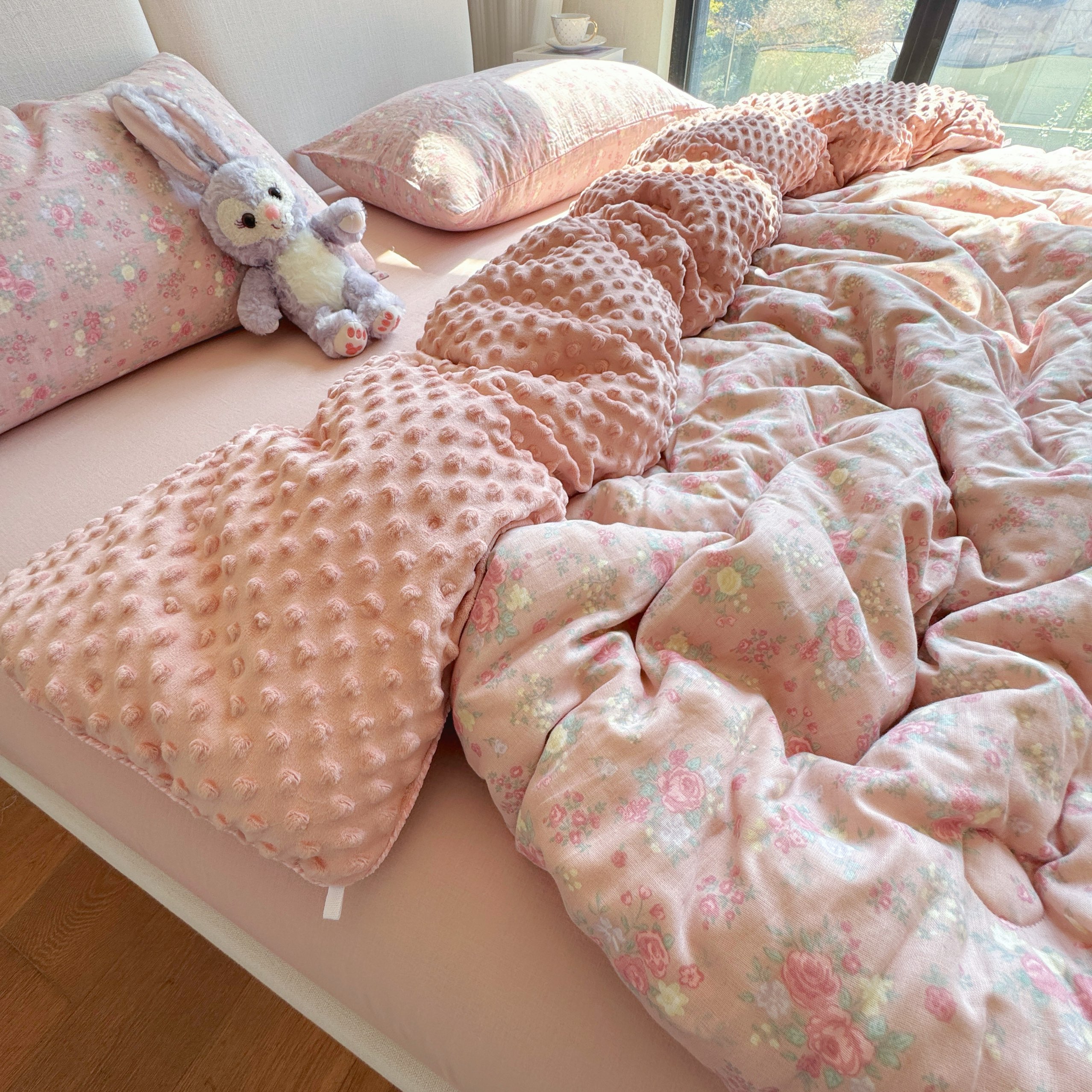 8+8 2025新款全棉A类母婴级抗菌有氧全棉双层纱亲肤全棉小清新印花三件套四件套 简约款-极简主义粉,简约款-极简主义粉