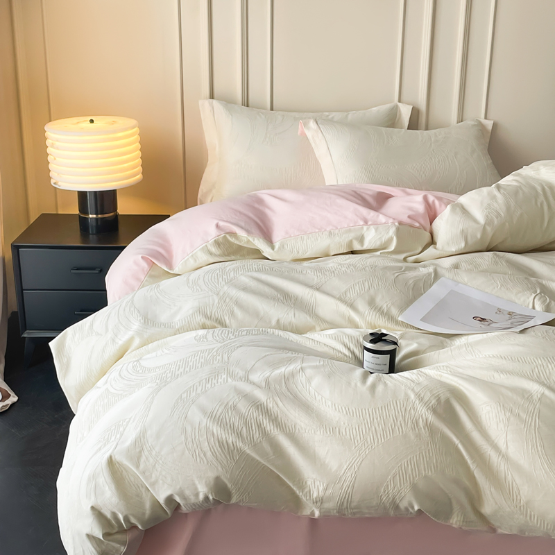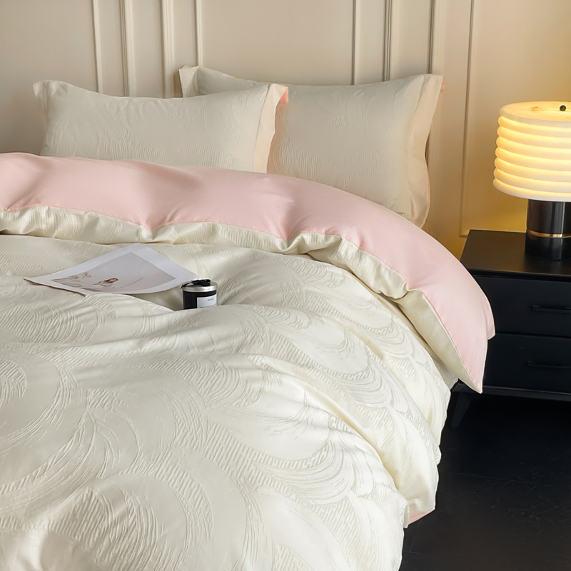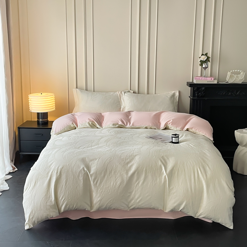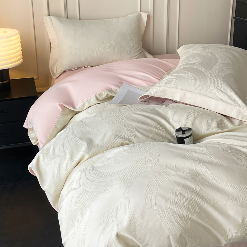 云锦家居 2025新款秋冬50双股磨毛提花四件套 雅韵-粉白