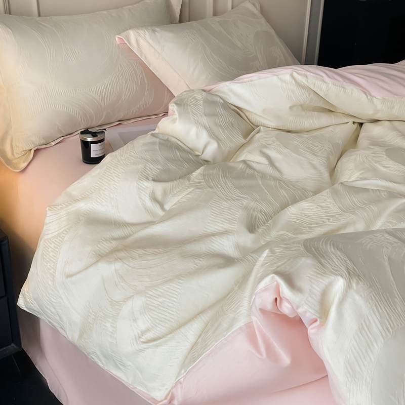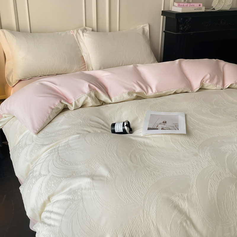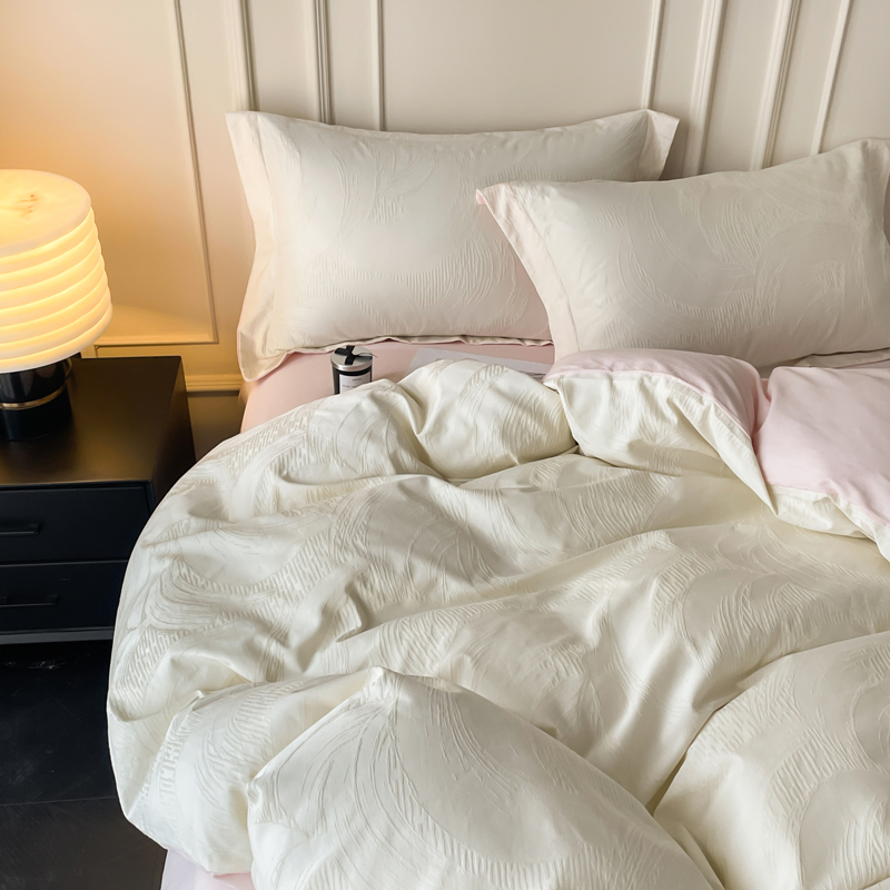 商品名称:云锦家居 2025新款秋冬50双股磨毛提花四件套 雅韵-粉白
