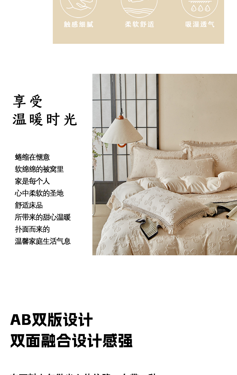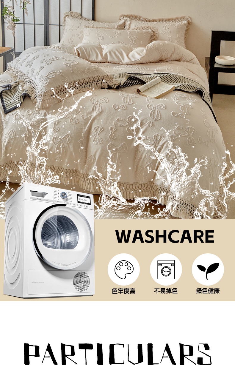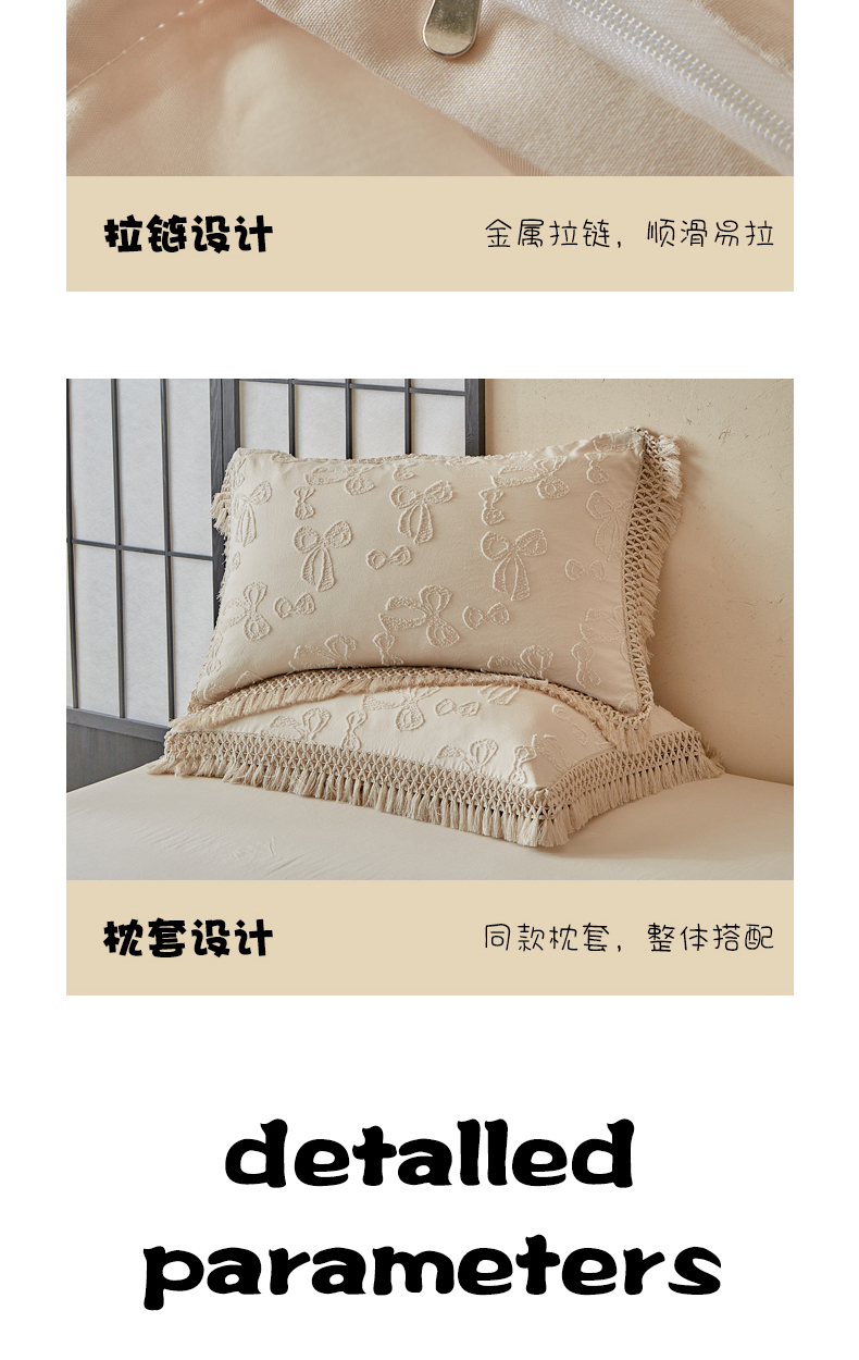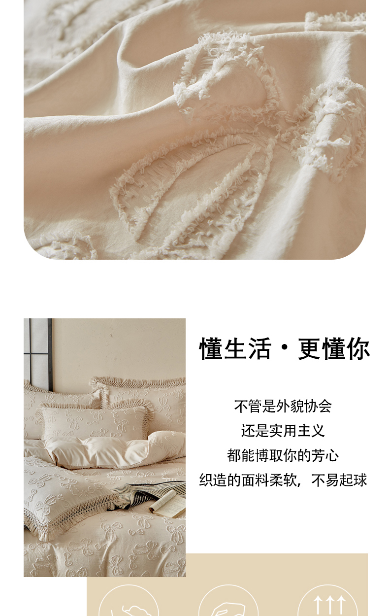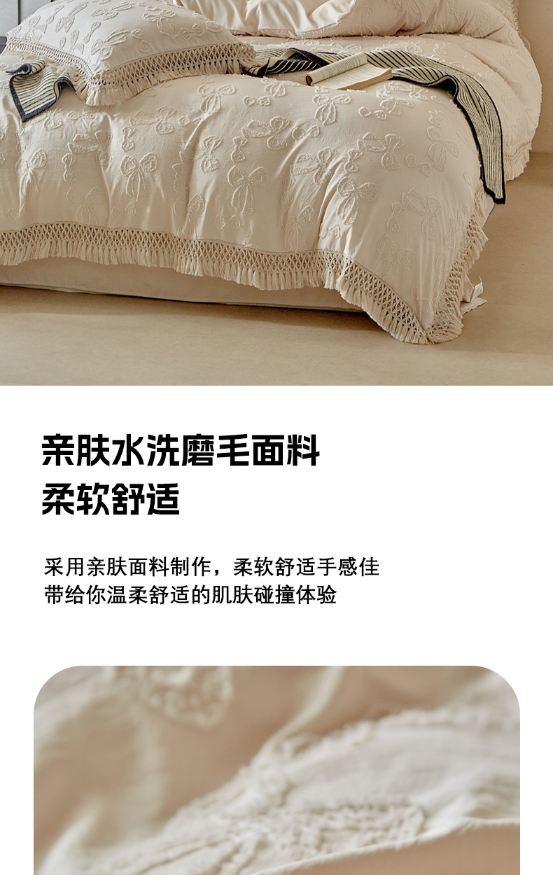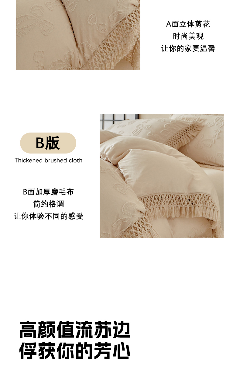 当前位置: 91家纺网 > 商品网购 > 床品套件 > 四件套 > 其它四件套 > 缘生活 2025新款立体剪花流苏四件套 四季通用-新增花型 剪花蝴蝶结 流苏+卡其