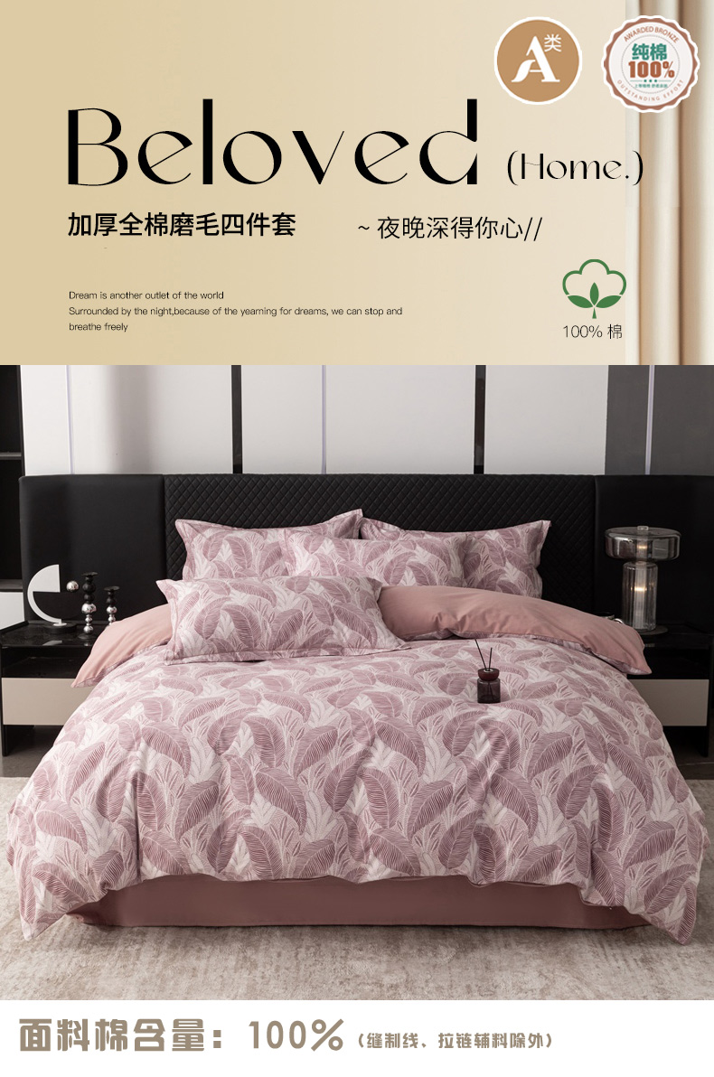 当前位置: 91家纺网 > 商品网购 > 床品套件 > 四件套 > 普通磨毛四件套 > 晶缦家纺 2025新款加厚纯棉全棉磨毛四件套 淡颜粉