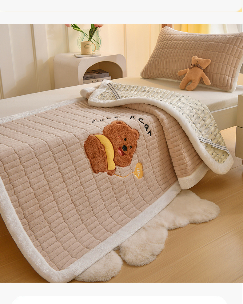 悠米悠家 2025新款学生款兔毛绒刺绣夹棉上下铺床褥 小熊-卡其色