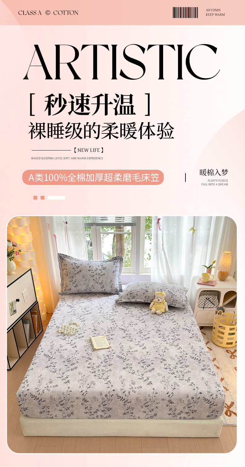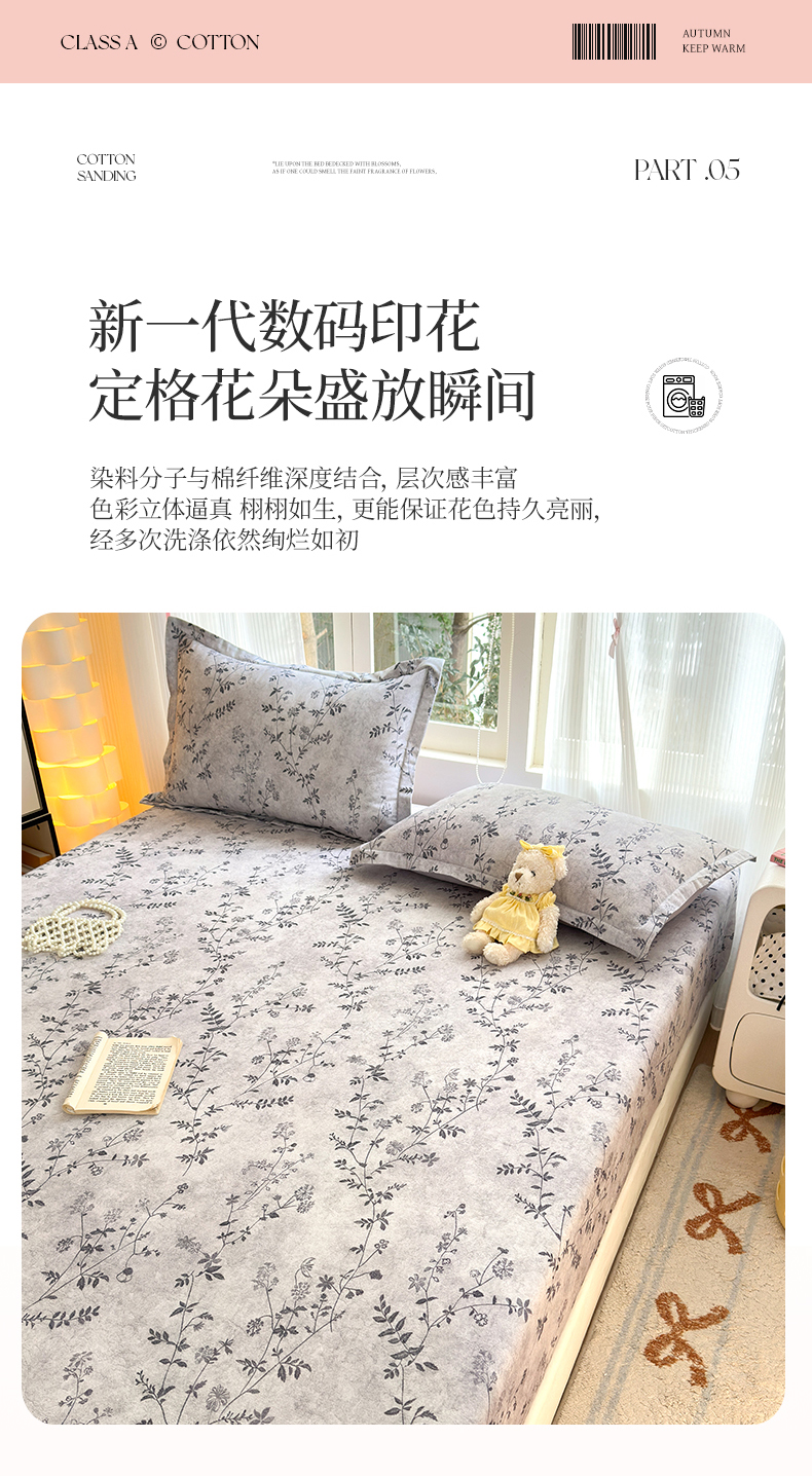 • 91家纺网 家纺一手货源 找家纺 拾物记 2025新款A类全棉纯棉加厚超柔磨毛单床笠(提供买家秀质检报告和实验视频) 织梦-灰