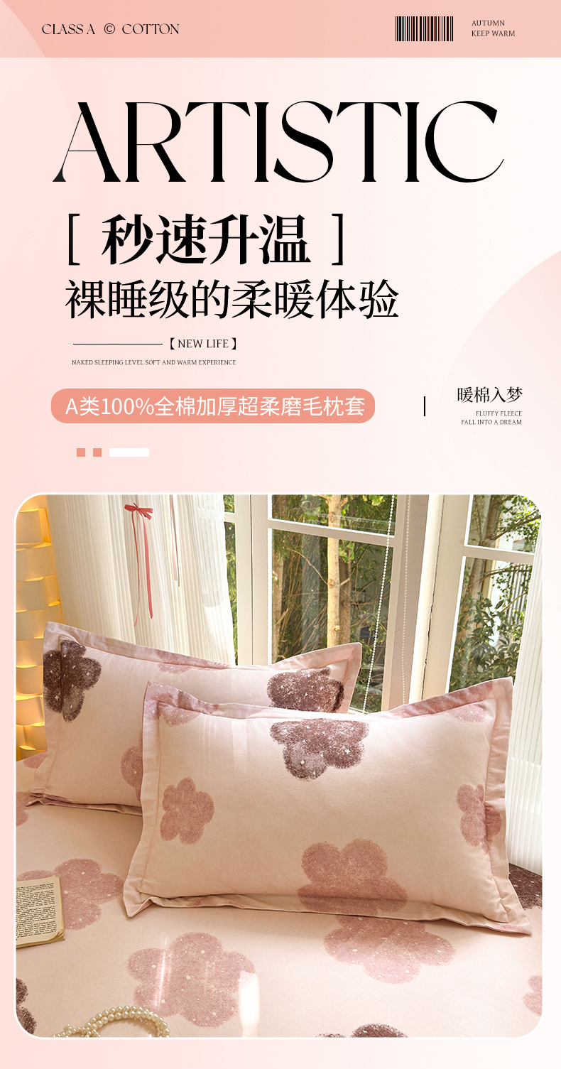 商品名称:拾物记 2025新款A类全棉纯棉加厚超柔磨毛单枕套(提供买家秀质检报告和实验视频) 莫拉慕斯