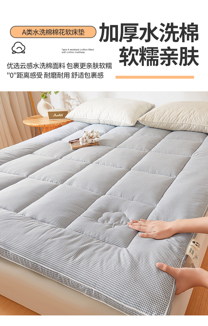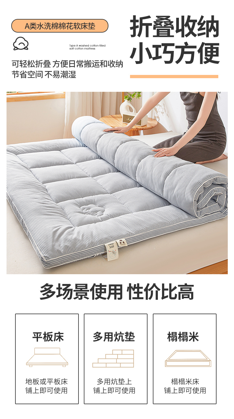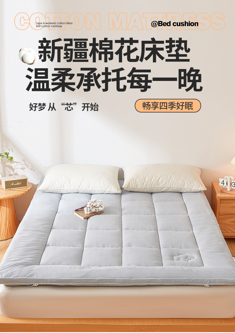 当前位置: 91家纺网 > 商品网购 > 床垫/床褥 > 普通床垫 > 魅图家纺 2025新款水洗棉新疆棉花床垫床褥-小格系列 小格-蓝