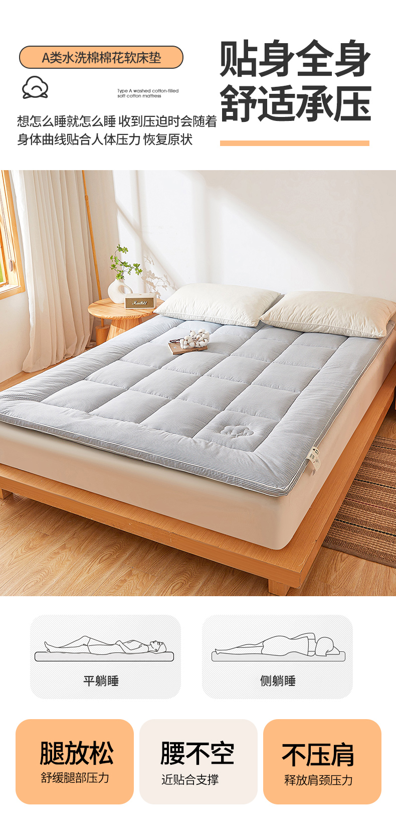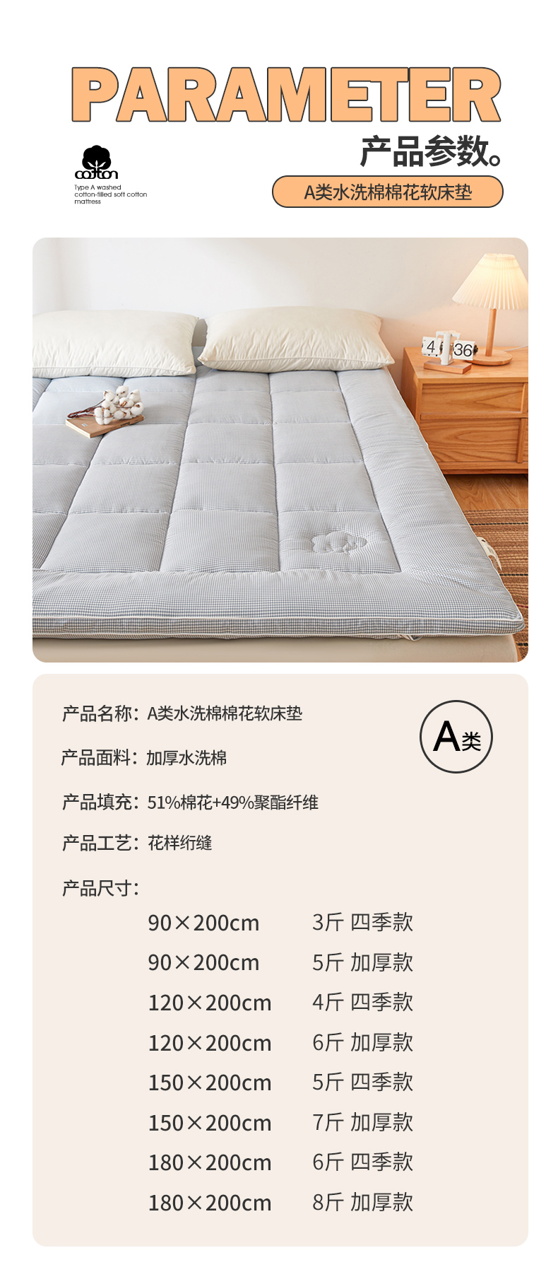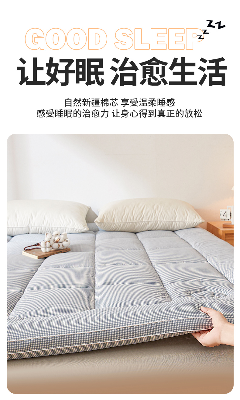 当前位置: 91家纺网 > 商品网购 > 床垫/床褥 > 普通床垫 > 魅图家纺 2025新款水洗棉新疆棉花床垫床褥-小格系列 小格-蓝