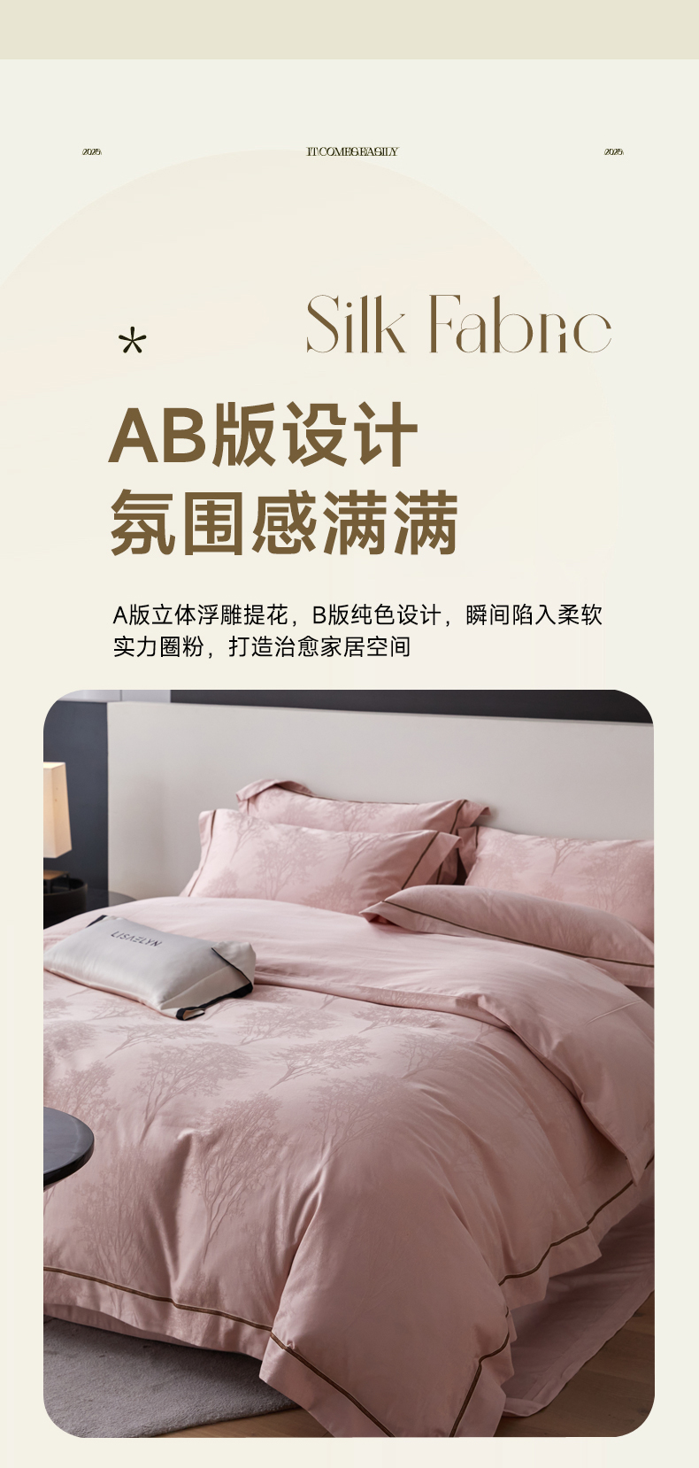 (总)琉宿家纺 2025新款50s双股长绒棉提花宽边工艺四件套,蒂娜-灰色,蒂娜-奶白,花漫影-豆沙,花漫影-浅香槟,枫洛(粉玉),枫洛(清新兰),曼琳(豆沙),曼琳(灰)