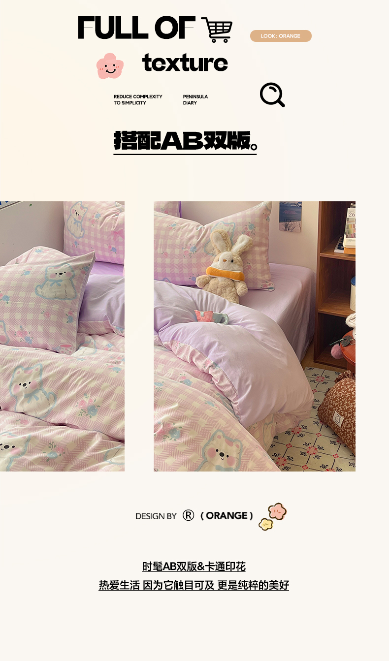 当前位置: 91家纺网 > 商品网购 > 床品套件 > 四件套 > 水洗棉四件套 > 优承佳生活馆 2026新款洛丽塔风水洗印花四件套学生三件套单被套系列 卖乖崽崽