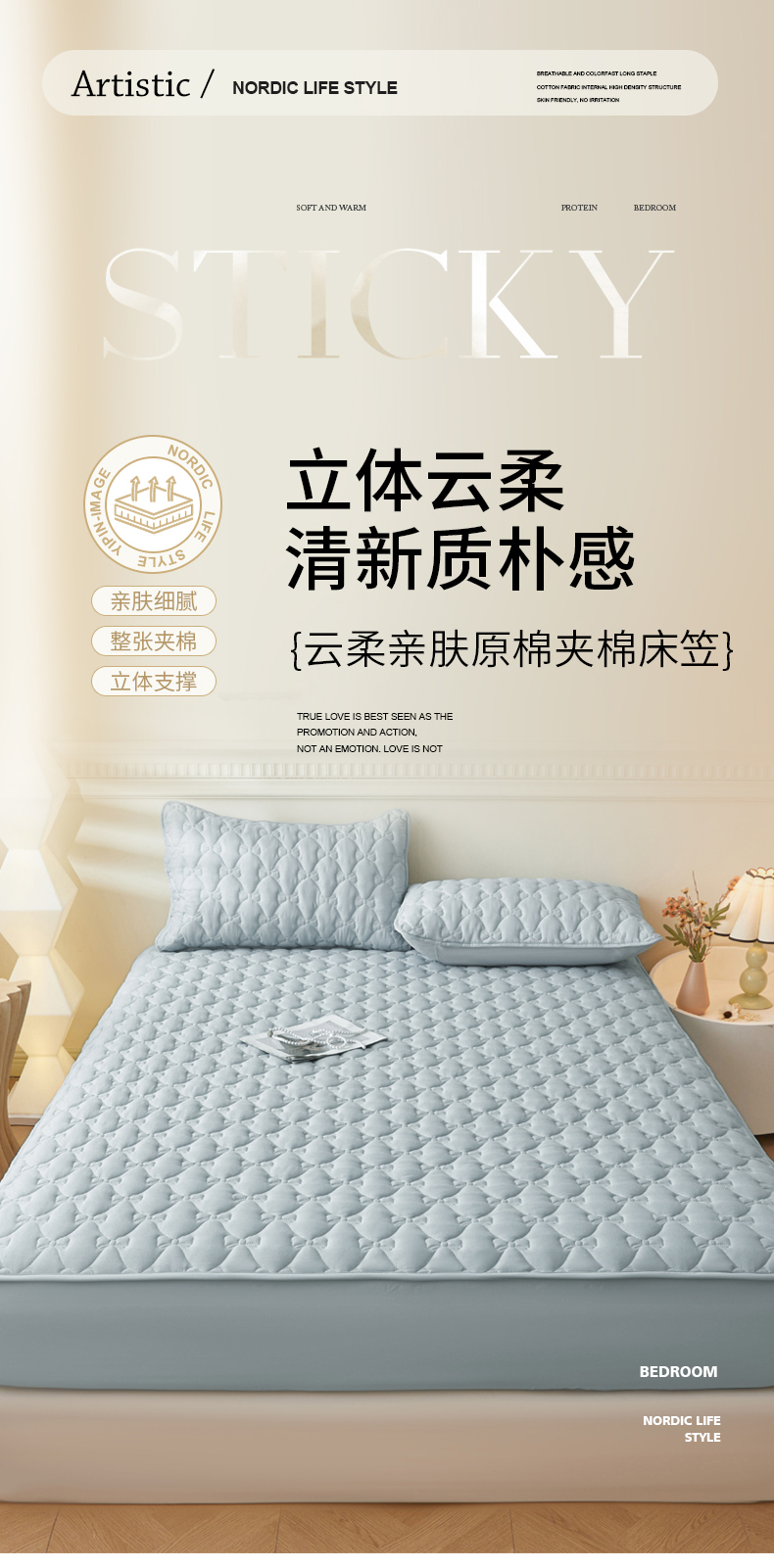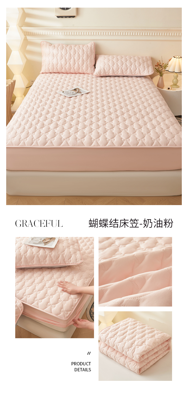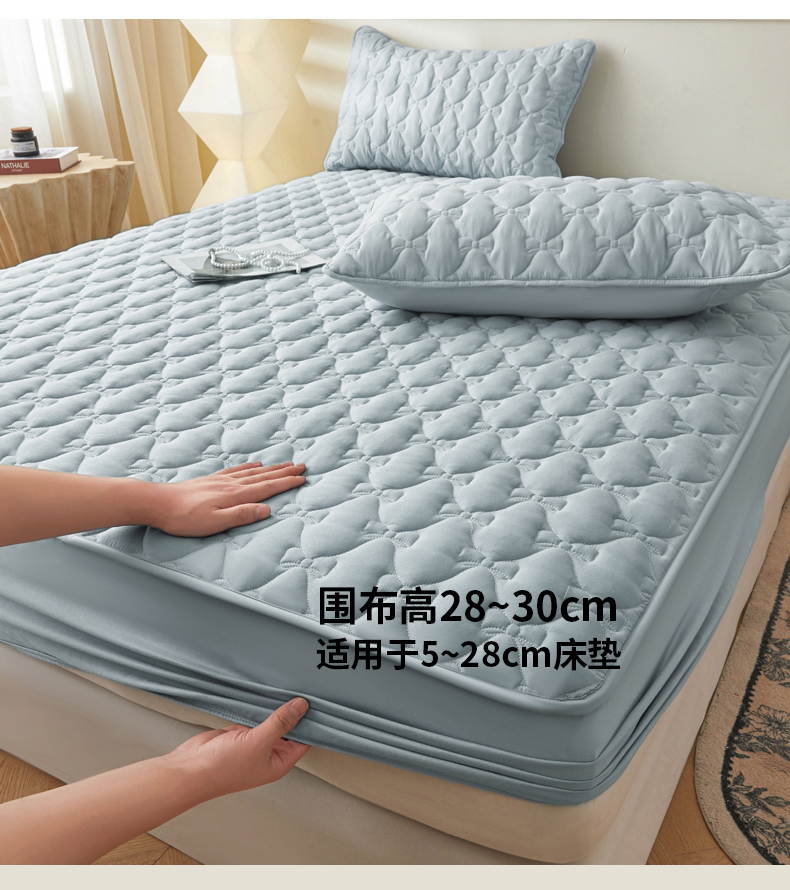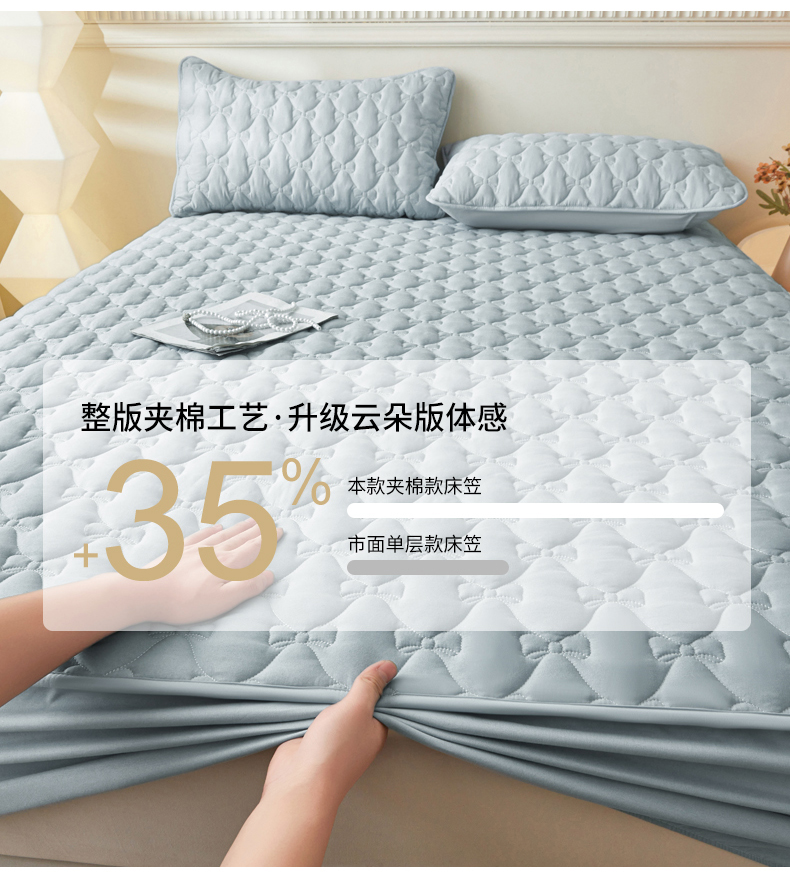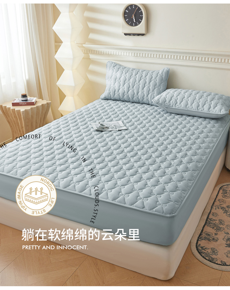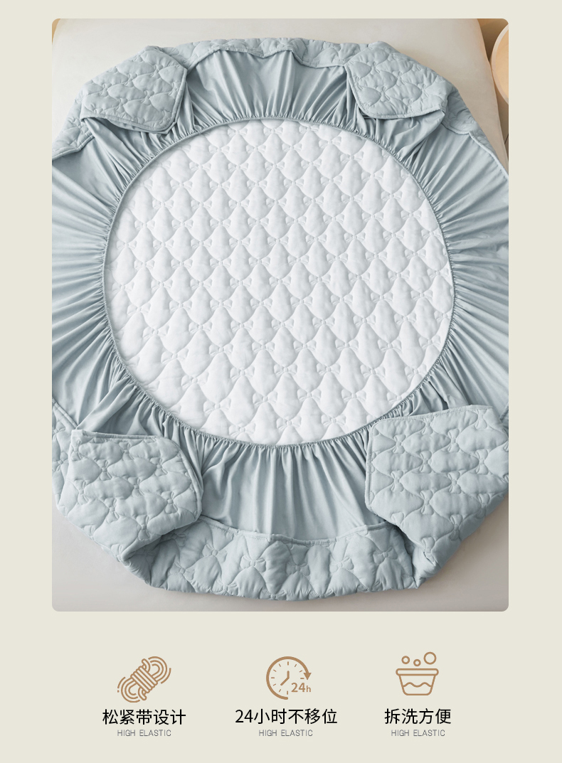 • 91家纺网 家纺一手货源 找家纺 LIFE.丽芙 2025新款水洗原棉单件蝴蝶结绗缝夹棉床笠三件套 蝴蝶结床笠-海青