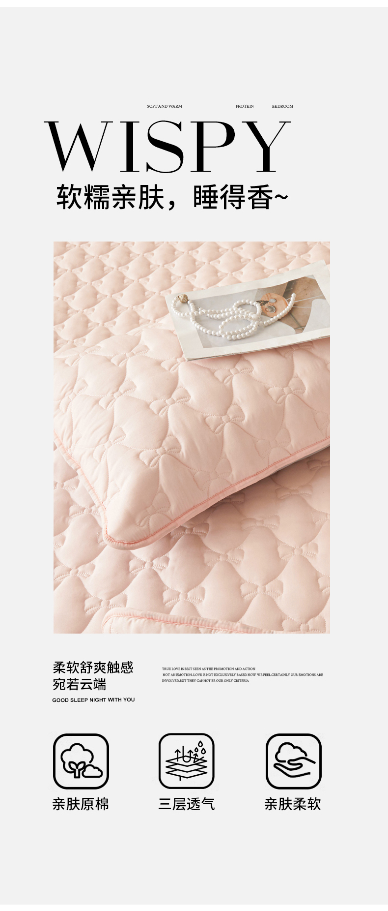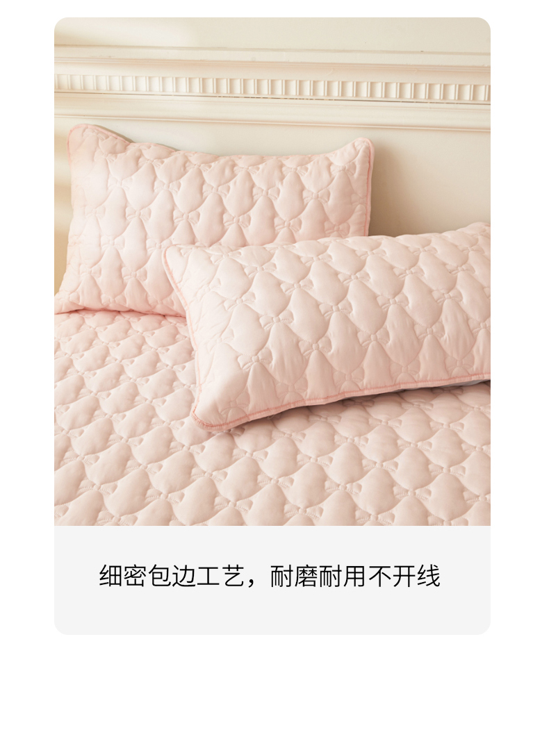 商品名称:LIFE.丽芙 2025新款水洗原棉夹棉包边枕套 蝴蝶结枕套-奶油粉