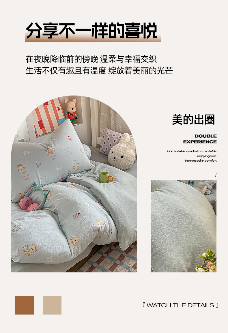 当前位置: 91家纺网 > 商品网购 > 床品套件 > 四件套 > 其它四件套 > 佳鸿家纺 2025新款卡通云感双层纱宿舍床单三件套居家四件套床单被套床笠款(提供买家秀) 小熊甜点乐园