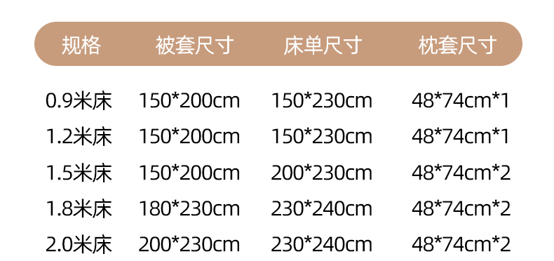 【床笠款】0.9x2.0三件套-被套150x200 | ¥42.00 |
