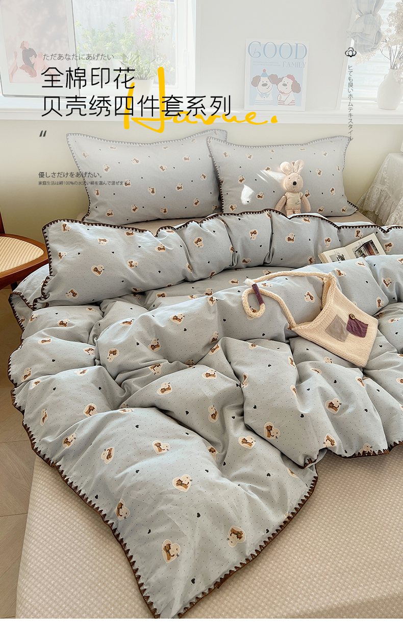 (总)瑞莱 2025新款全棉印花贝壳边四件套