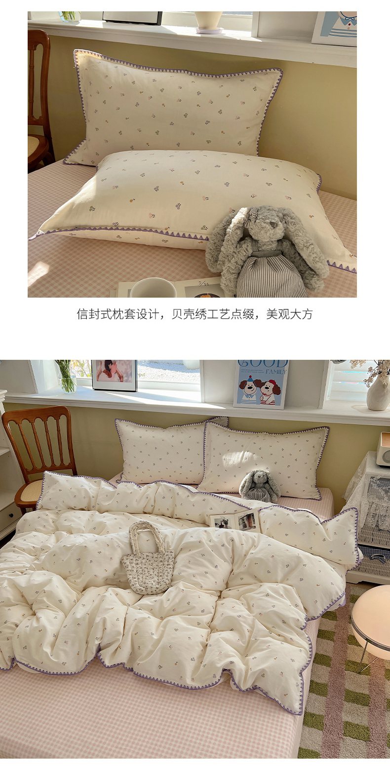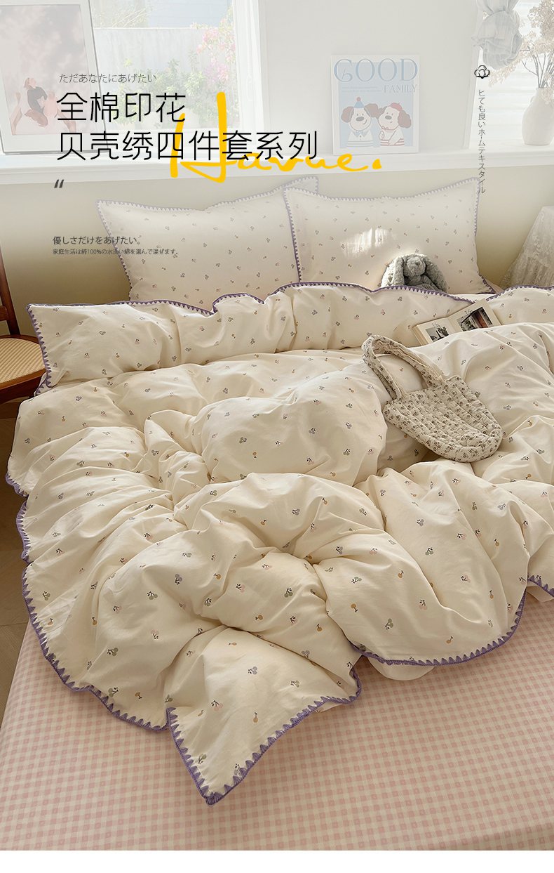 (总)瑞莱 2025新款全棉轻奢水洗棉贝壳绣四件套,豆沙,粉玉,米白,米黄,浅灰,浅蓝,深灰,深蓝,水绿,星蓝