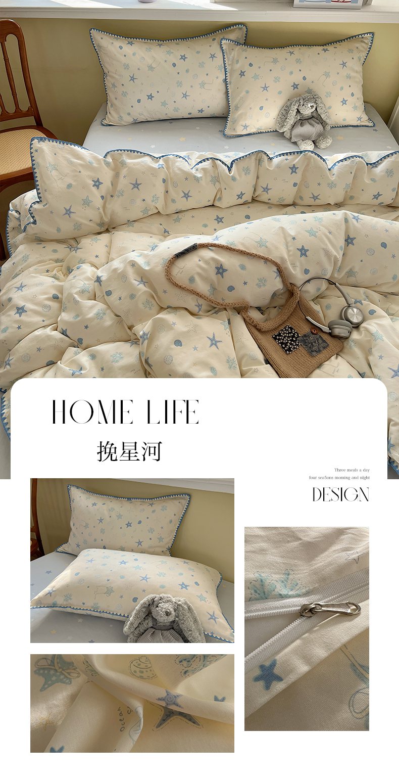 (总)瑞莱 2026年新款全棉纯棉水洗棉贝壳边四件套,棕岸蓝漪,暖阳黄棕,岸屿青芒,粉序白织,旧港蓝棕,雾屿紫青