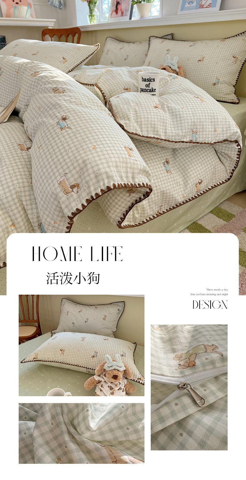(总)瑞莱 2026新款A类全棉纯棉有氧双层纱四件套,白熊小姐,彩色木马,淡彩花笺,费尔岛小熊,焦糖奶汪-桔,焦糖奶汪-绿,萌星,苹果星星人,小樱桃,樱桃画报