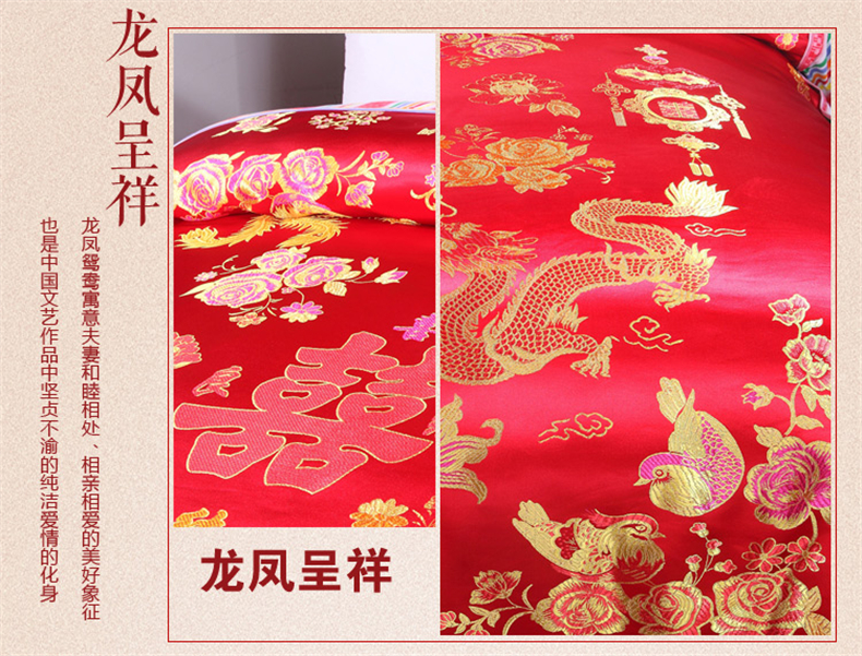当前位置: 91家纺网 > 商品网购 > 床品套件 > 四件套 > 婚庆四件套 > 浩情国际婚庆供货中心 2026新品婚庆结婚绸缎面全棉老粗布经典款被套被单龙凤呈祥百子图大红绿长期供货 龙凤呈祥-绸缎被套 -大红