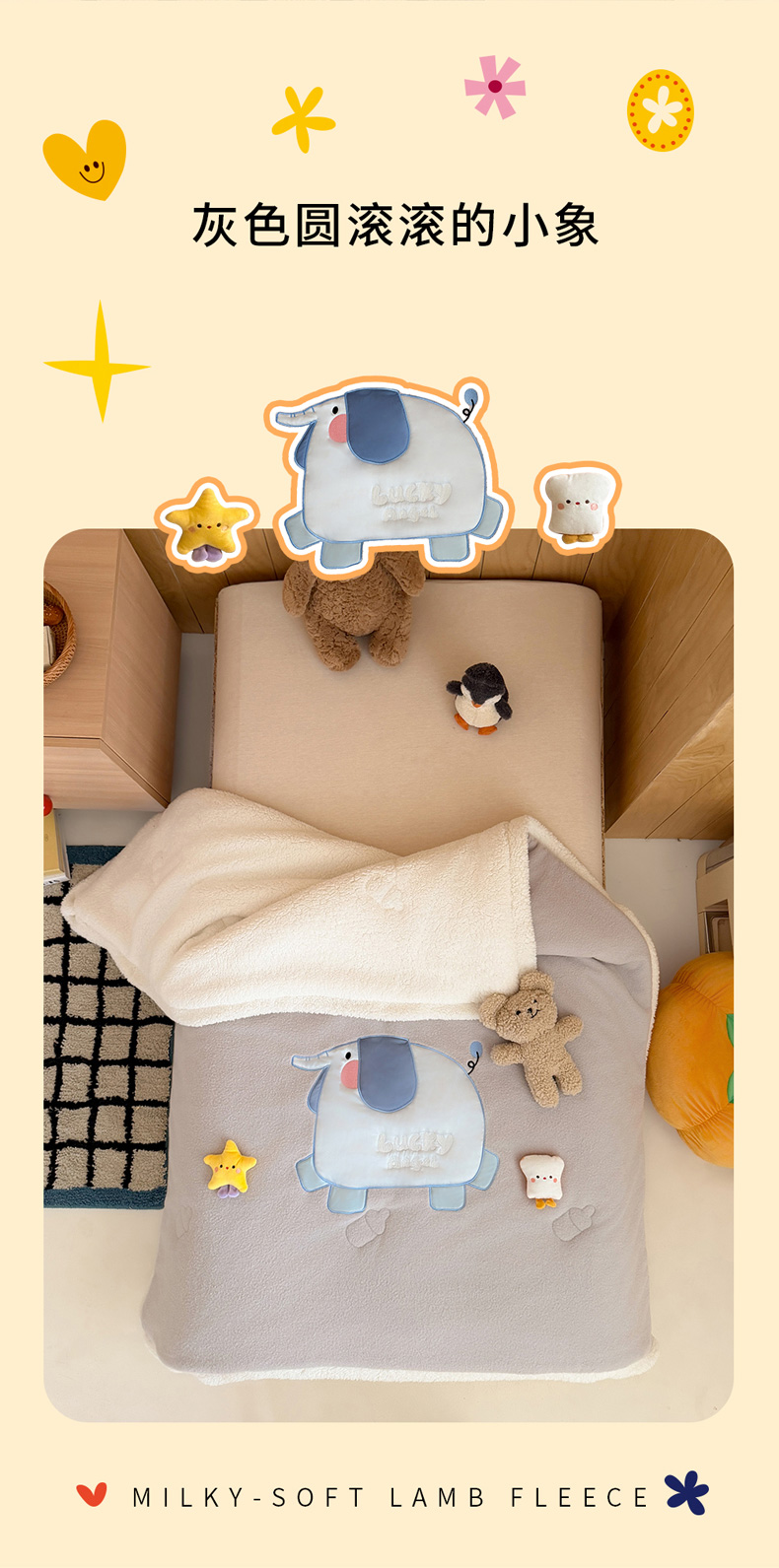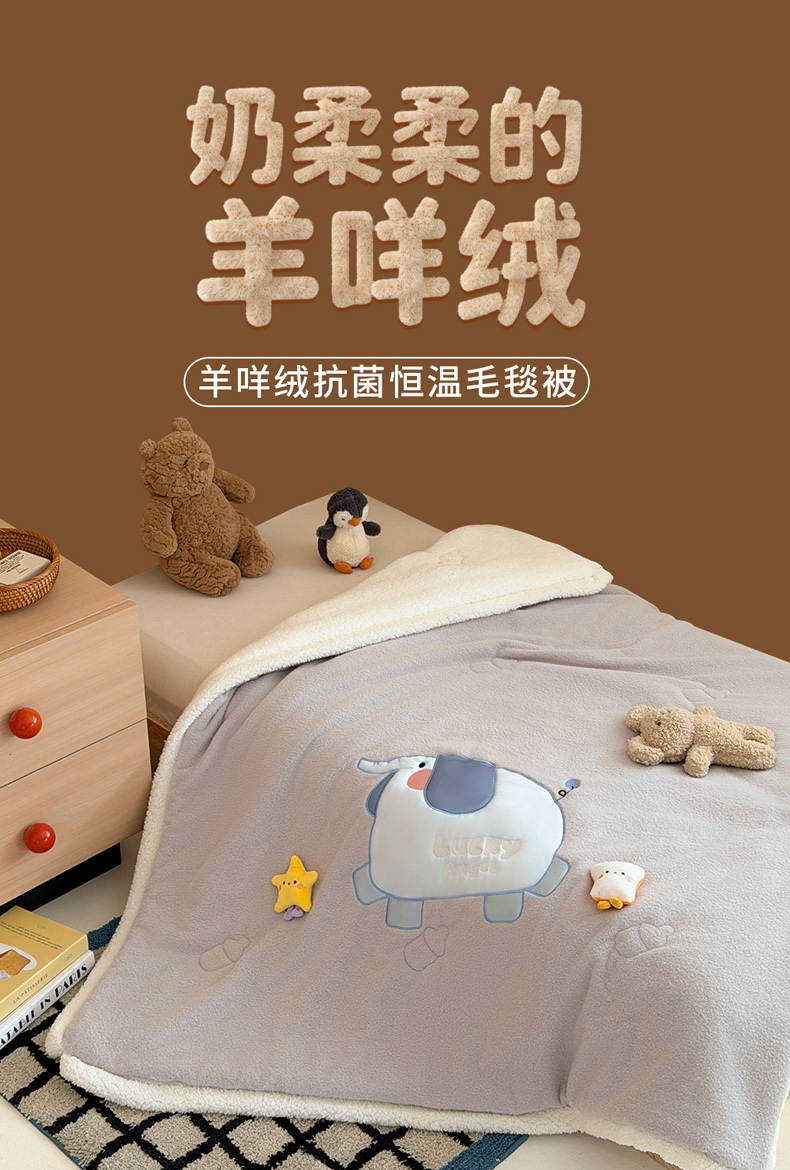 当前位置: 91家纺网 > 商品网购 > 毛毯休闲毯绒毯 > 毛毯 > 喜多兔儿童家纺 2025新款圆圆系列抗菌恒温奶柔羊咩绒毯毛毯被 灰色圆滚滚的小象