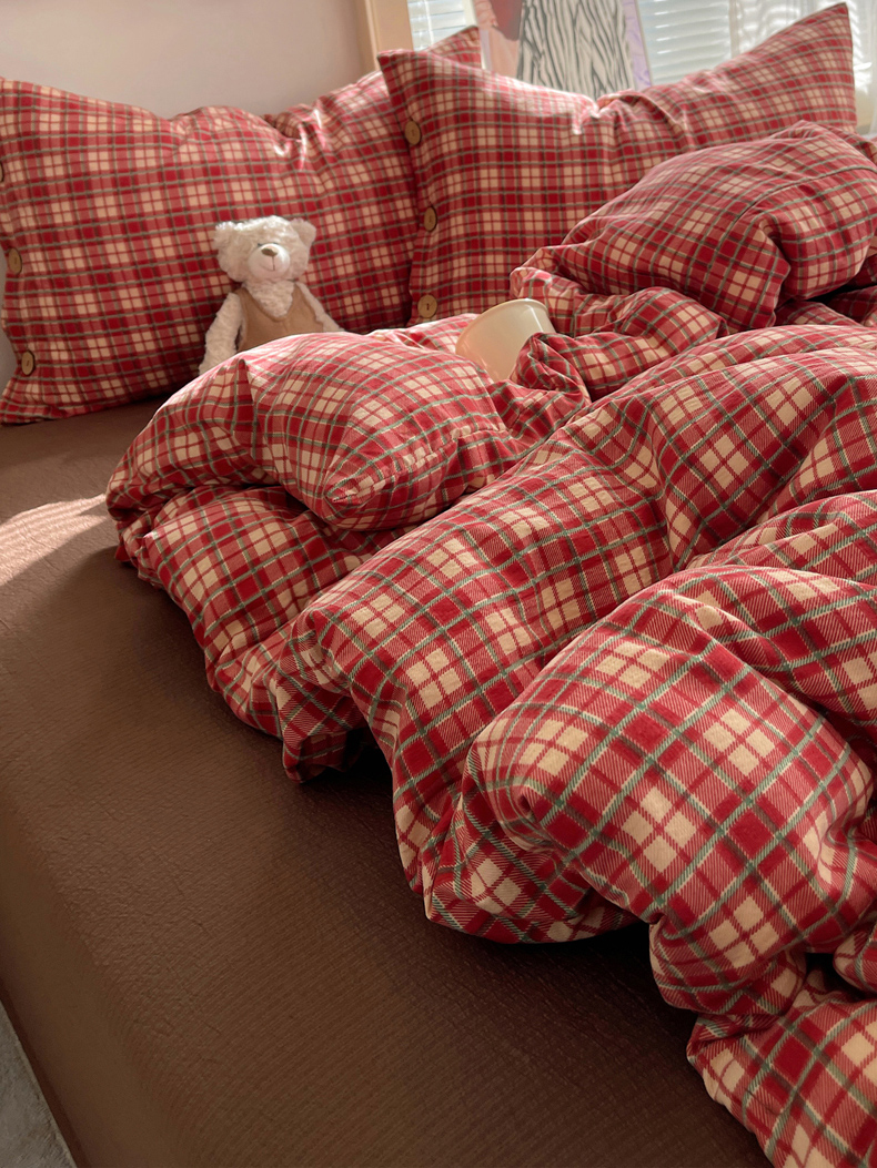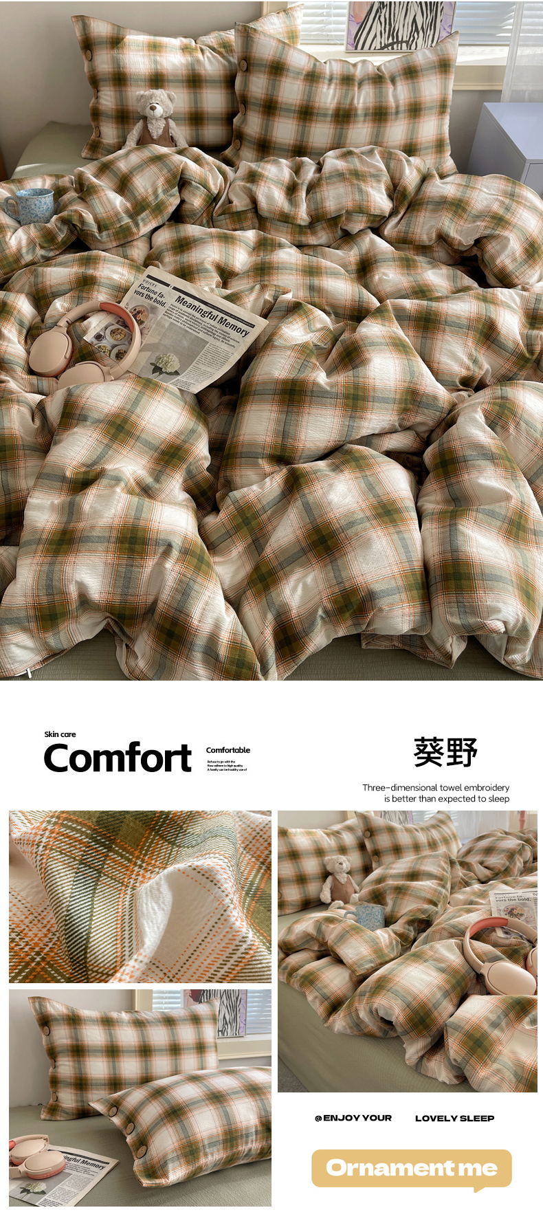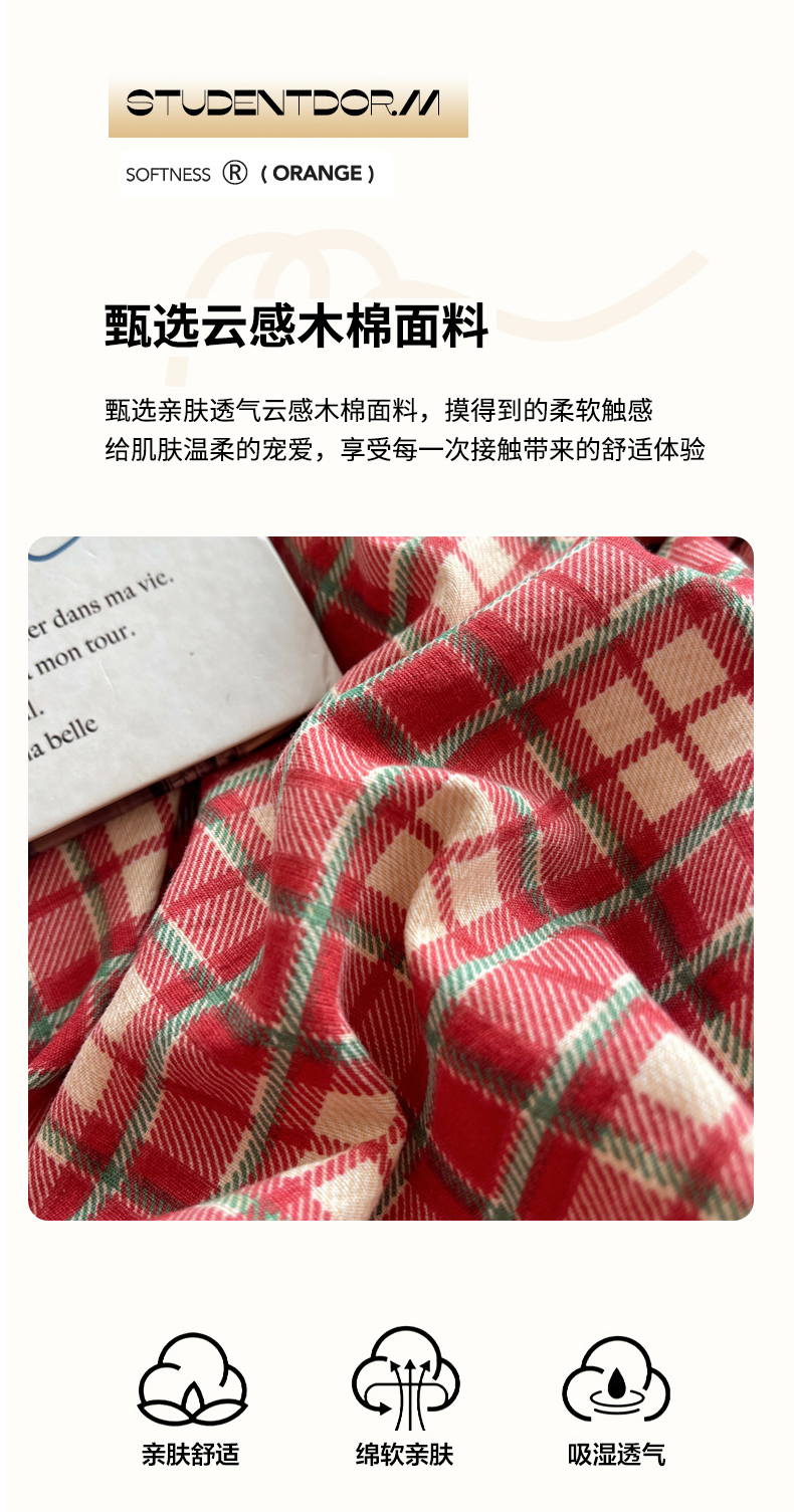 当前位置: 91家纺网 > 商品网购 > 床品套件 > 四件套 > 化纤普通四件套 > 优兰朵 2025新款新年热款格子条纹双拼繁花云感木棉纽扣款宿舍新款老钱风四件套 青柠