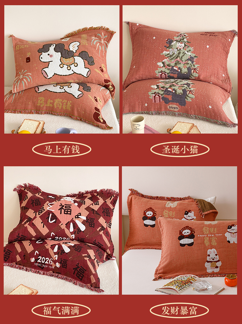 (总)麻依 2025新款婚庆全棉流苏款四层纱布枕巾,发财暴富52*75,福禄52*75,福娃52*75,好运52*75,锦鲤52*75,平安喜乐52*75,新年快乐52*75