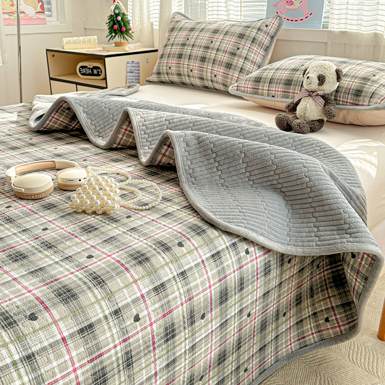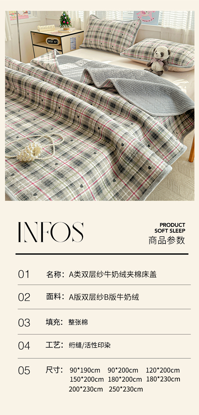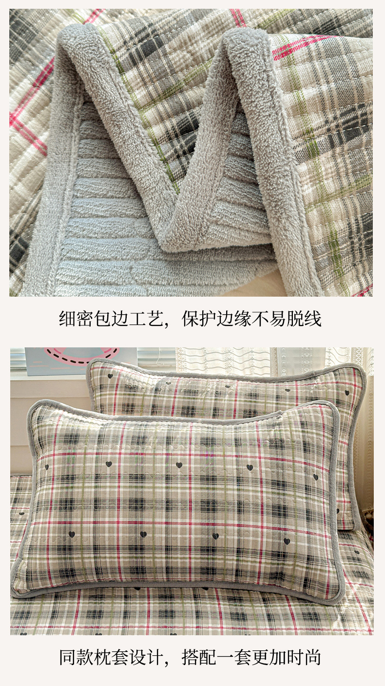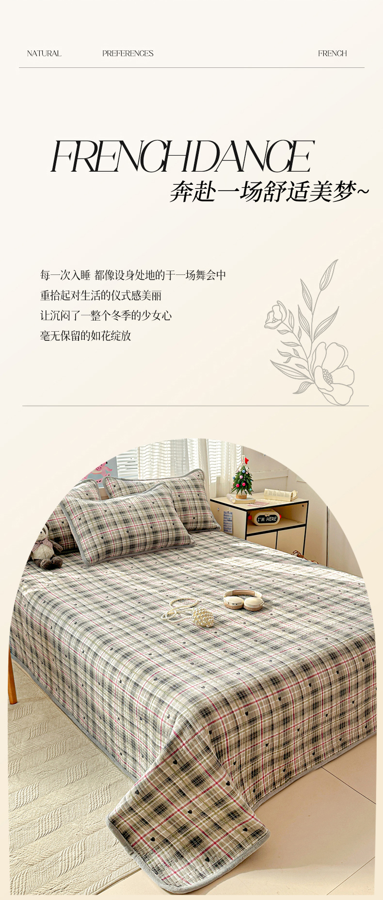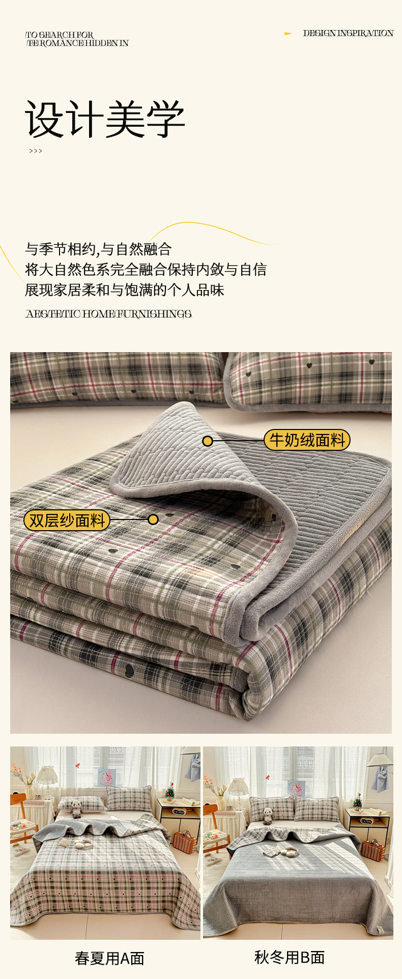 恒尚居 2026新款A双层纱B牛奶绒床盖双面两用夹棉床单学生床垫床褥子系列二 英伦格【A双层纱-B牛奶绒】