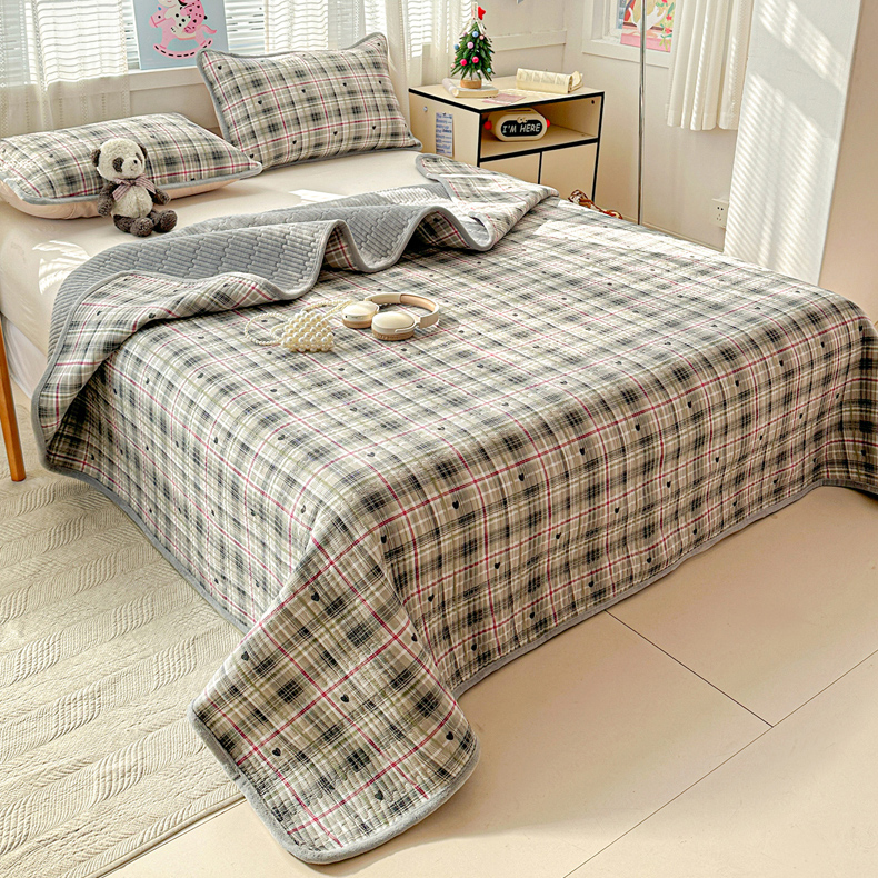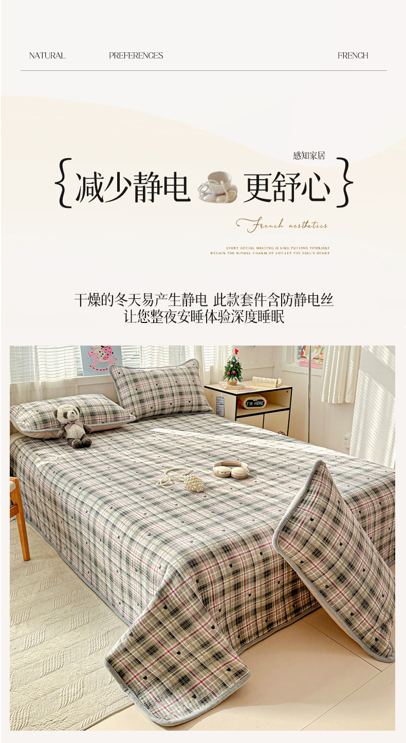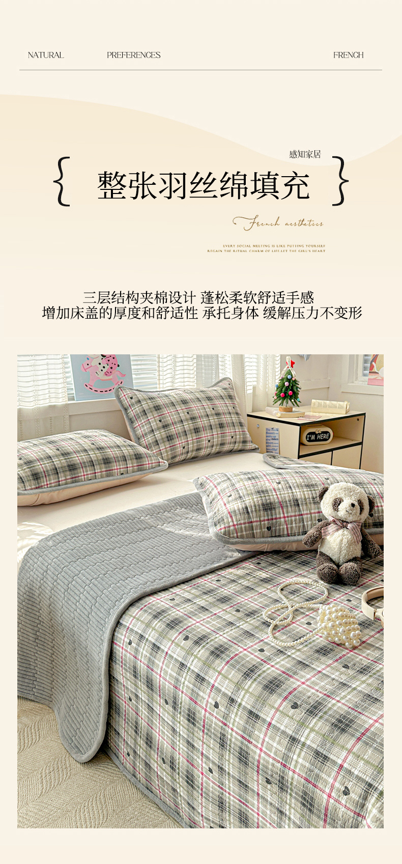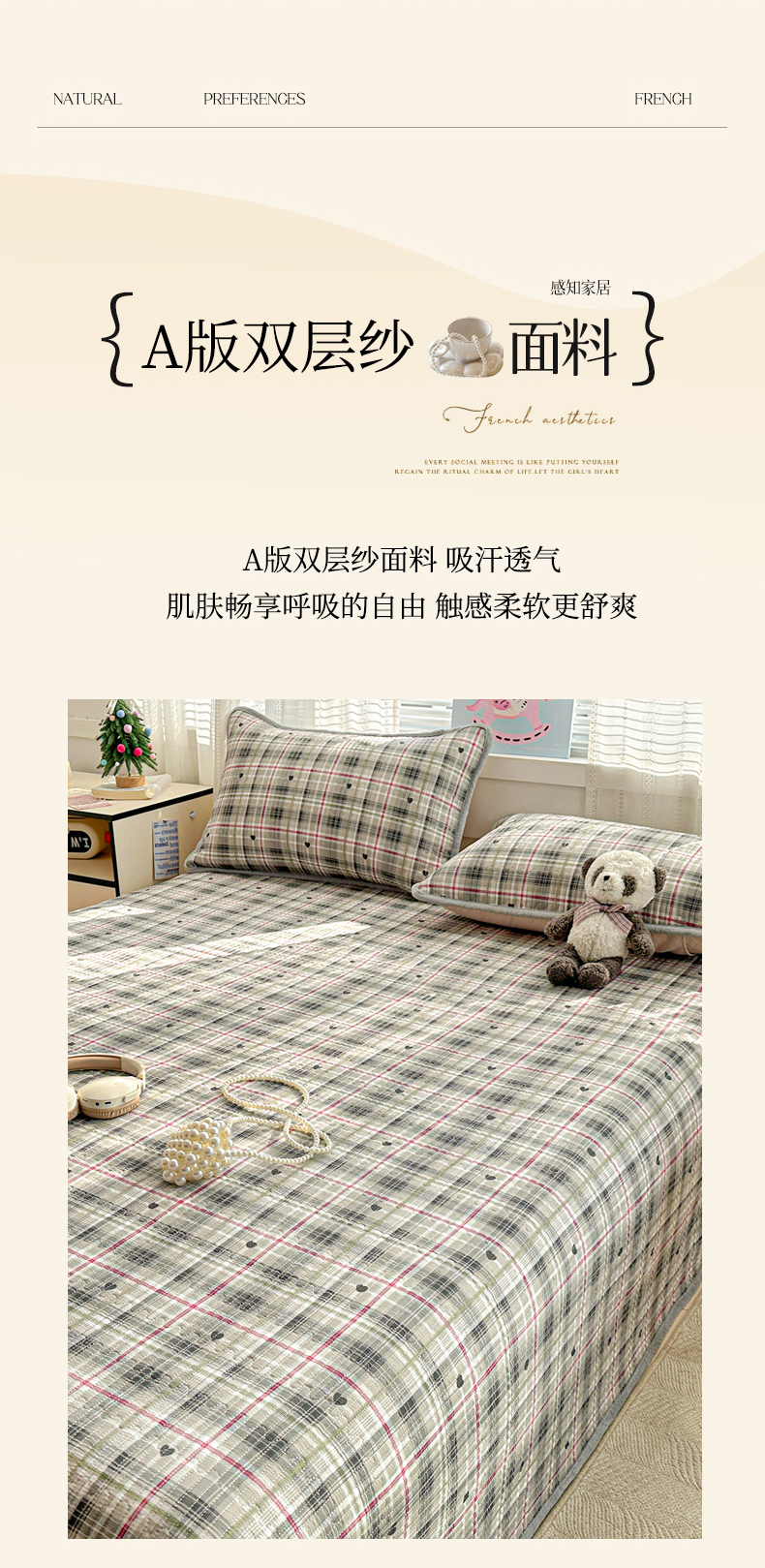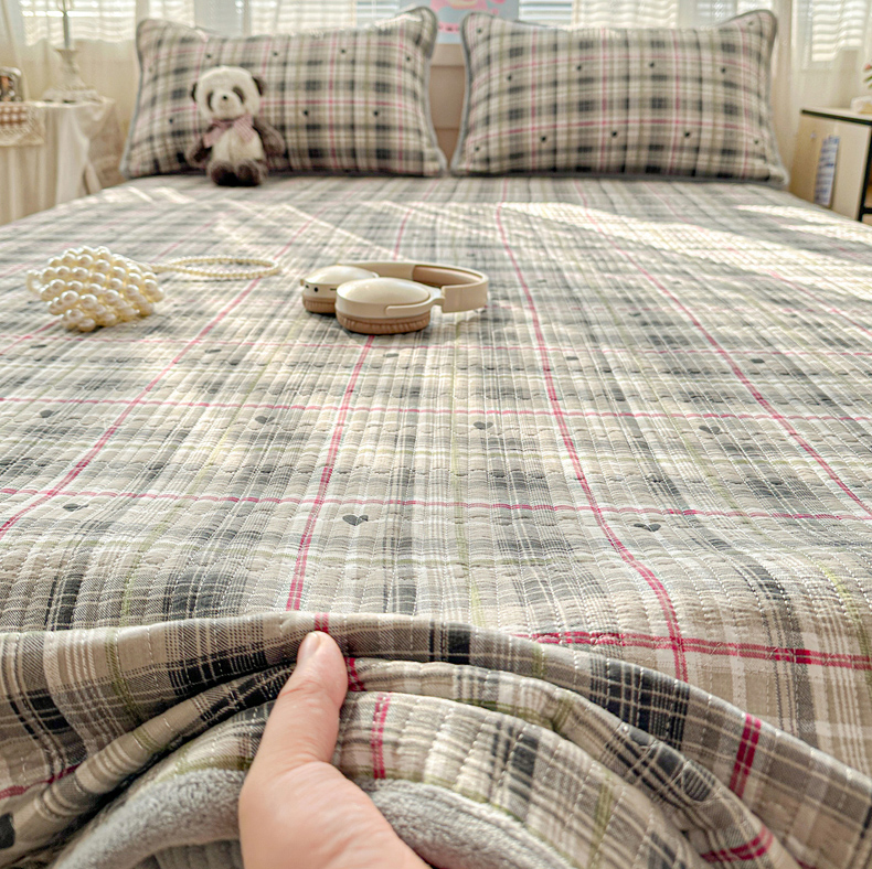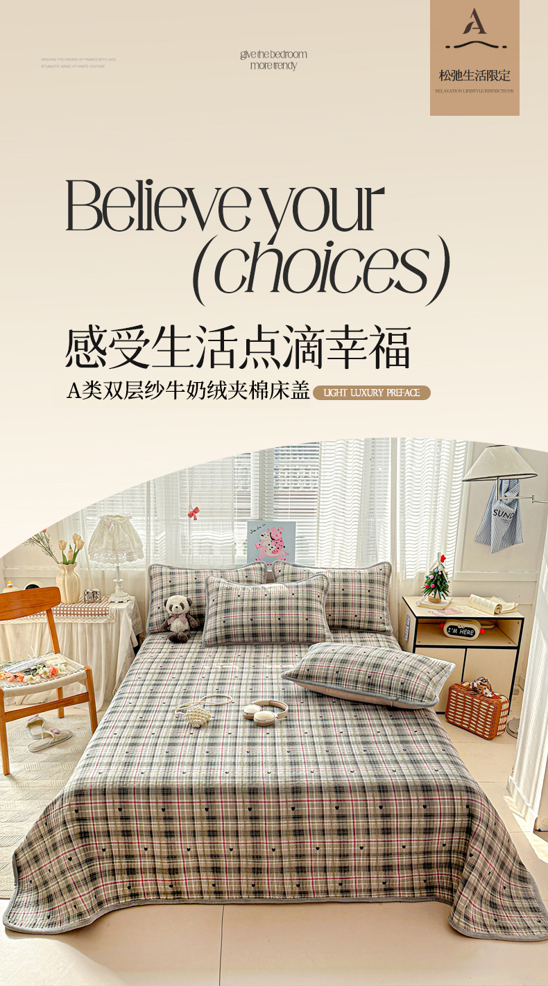 恒尚居 2026新款A双层纱B牛奶绒床盖双面两用夹棉床单学生床垫床褥子系列二 英伦格【A双层纱-B牛奶绒】