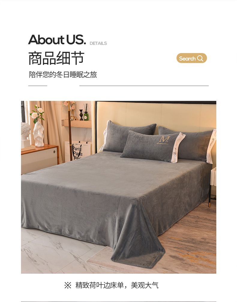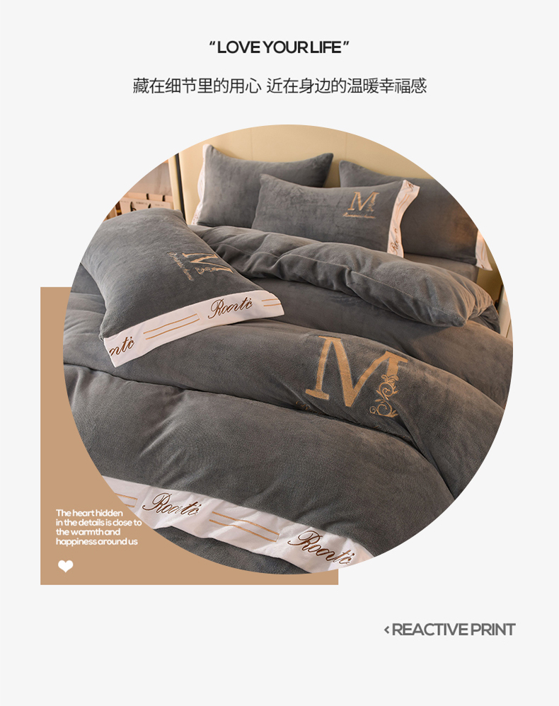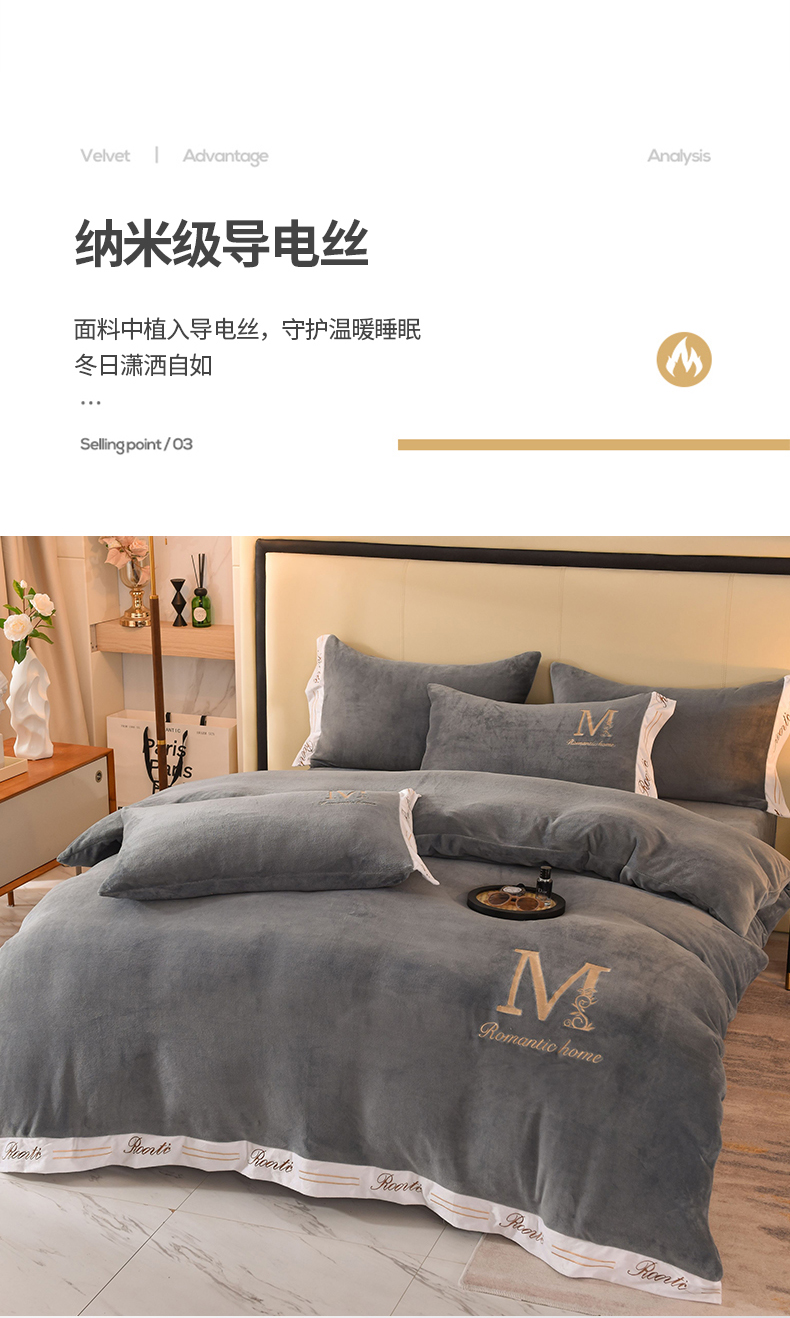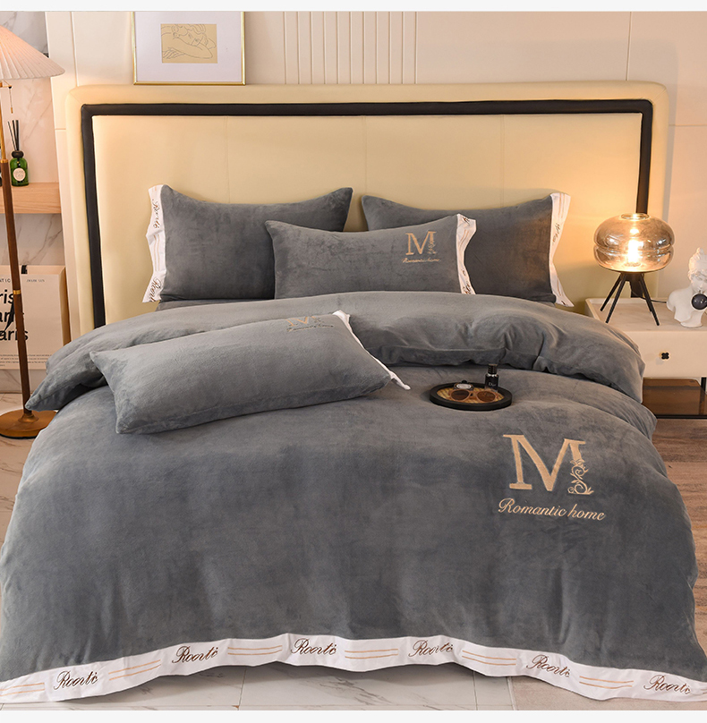 商品名称:大米家居 2025新款宽边刺绣牛奶绒四件套-罗曼蒂克系列 罗曼蒂克-星空灰