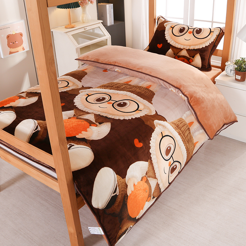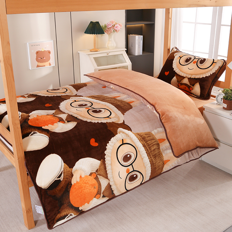 雨洋家纺 2025新款学生季加厚保暖牛奶绒金貂绒婴儿宝宝学生三件套 拉布布