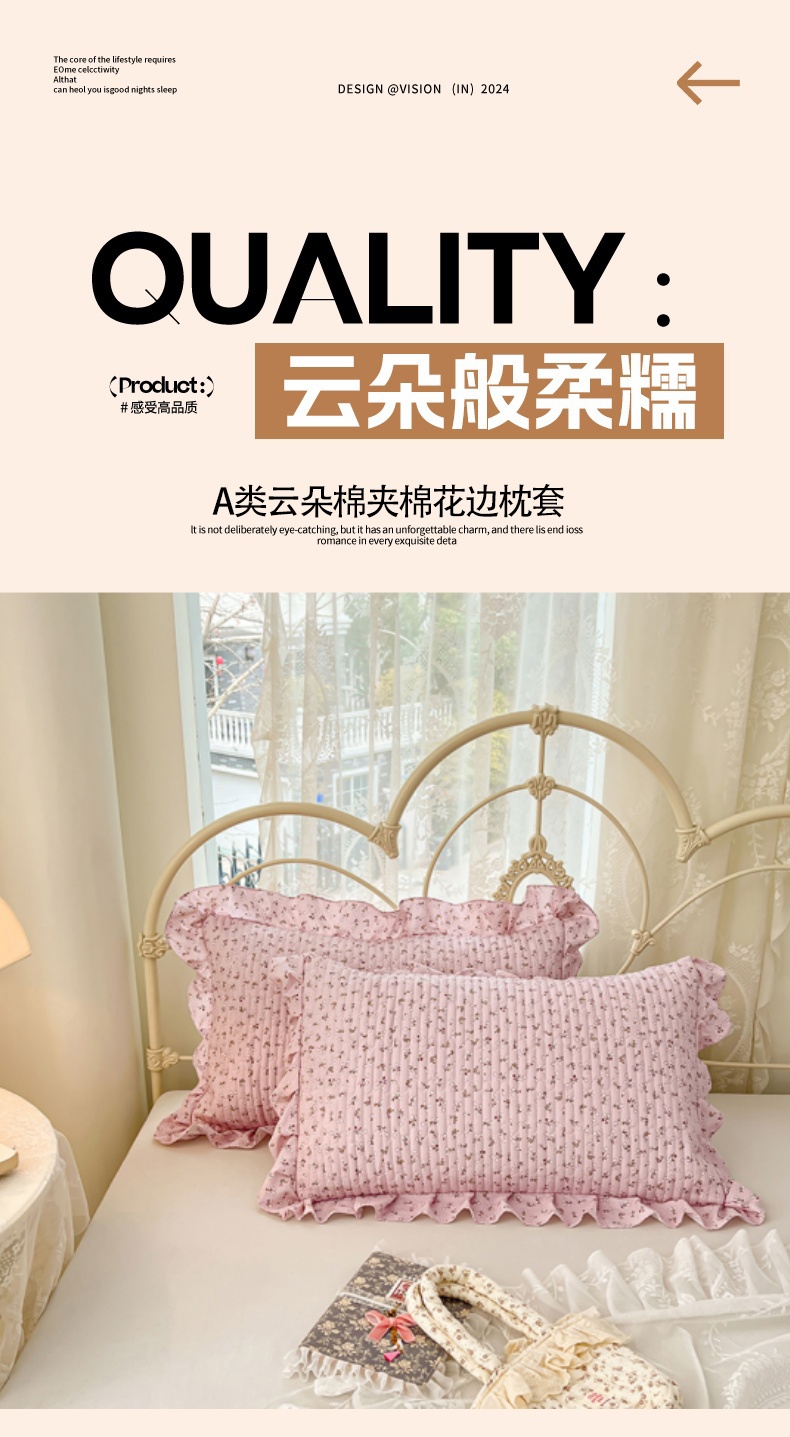 • 91家纺网 家纺一手货源 找家纺 圣比熊 2026新款A类云朵棉夹棉花边枕套宿舍单人一只装枕芯内胆套-单人枕套 爱丽丝-粉(花边夹棉)