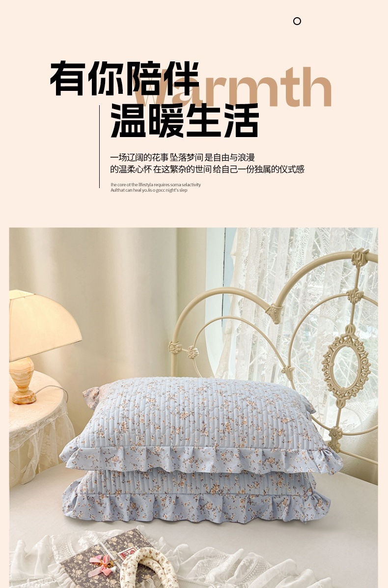 • 91家纺网 家纺一手货源 找家纺 圣比熊 2026新款A类云朵棉夹棉花边枕套宿舍单人一只装枕芯内胆套-单人枕套 兰亭序-蓝(花边夹棉)