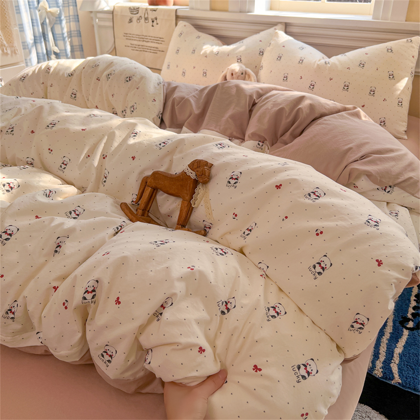 当前位置: 91家纺网 > 商品网购 > 床品套件 > 四件套 > 水洗棉四件套 > 瑞钰 2026新款A类古法水洗仿棉云感纱四件套幸运熊
