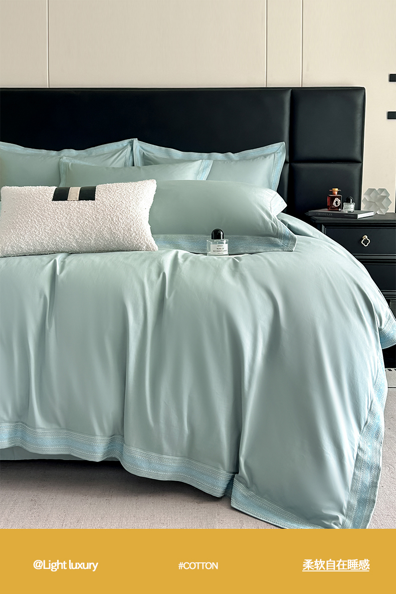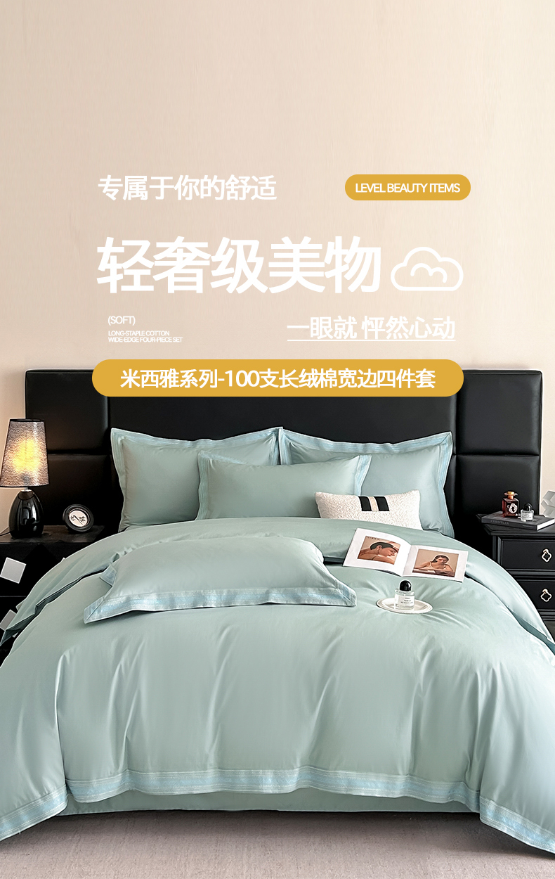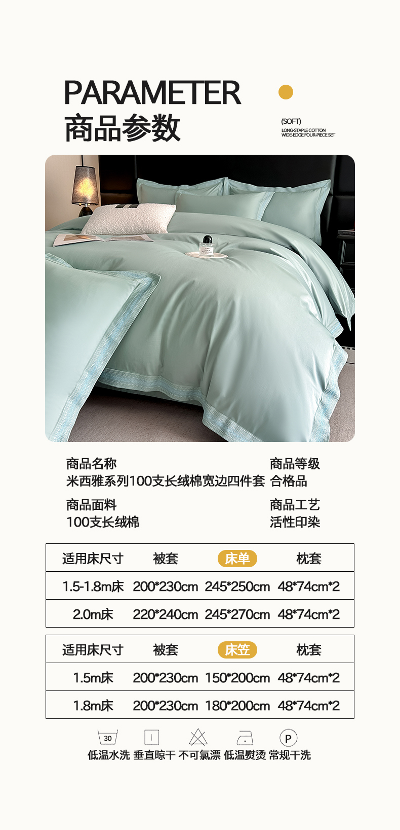 当前位置: 91家纺网 > 商品网购 > 床品套件 > 四件套 > 长绒棉四件套 > 置顶家纺 2025新款50双股支长绒棉纯棉宽边四件套-米西雅 米西雅-水蓝