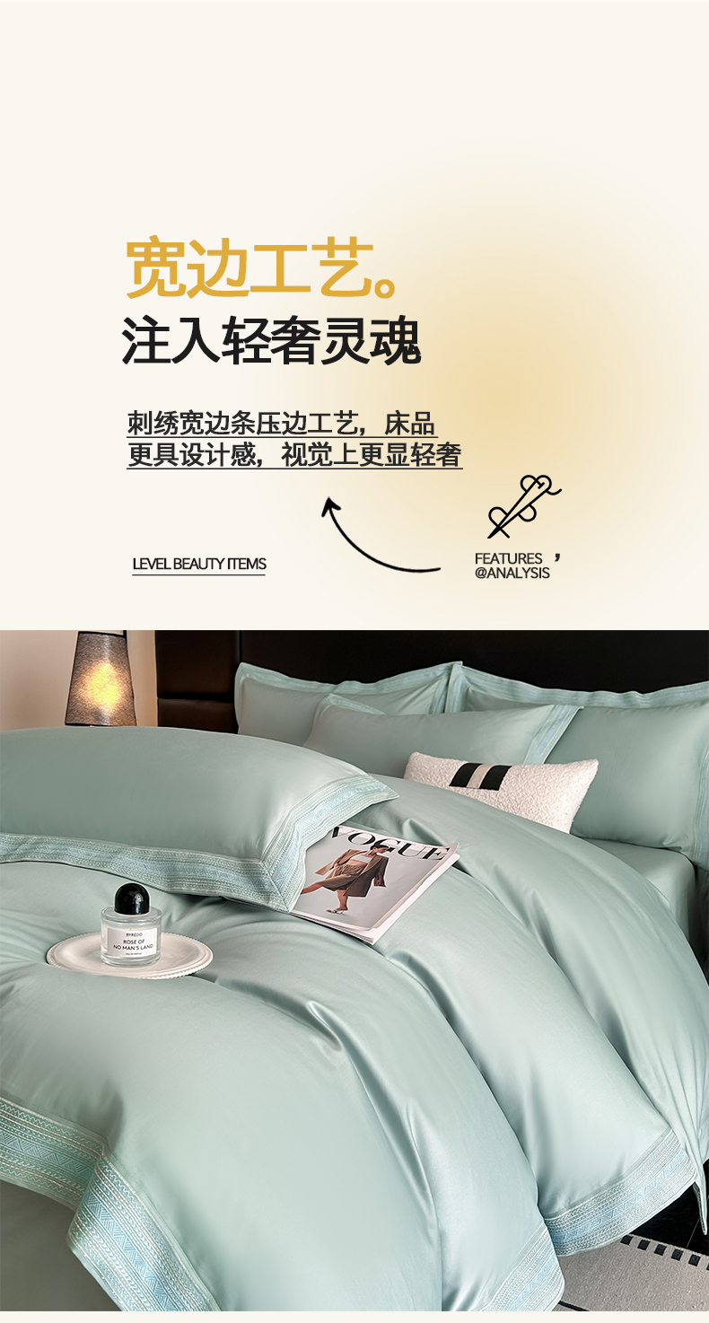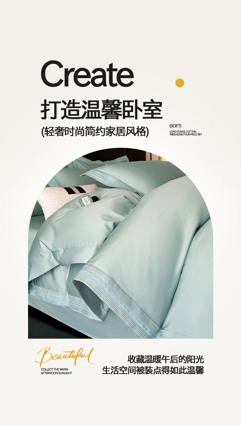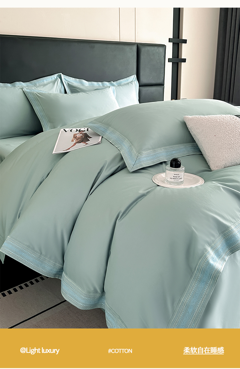 当前位置: 91家纺网 > 商品网购 > 床品套件 > 四件套 > 长绒棉四件套 > 置顶家纺 2025新款50双股支长绒棉纯棉宽边四件套-米西雅 米西雅-水蓝