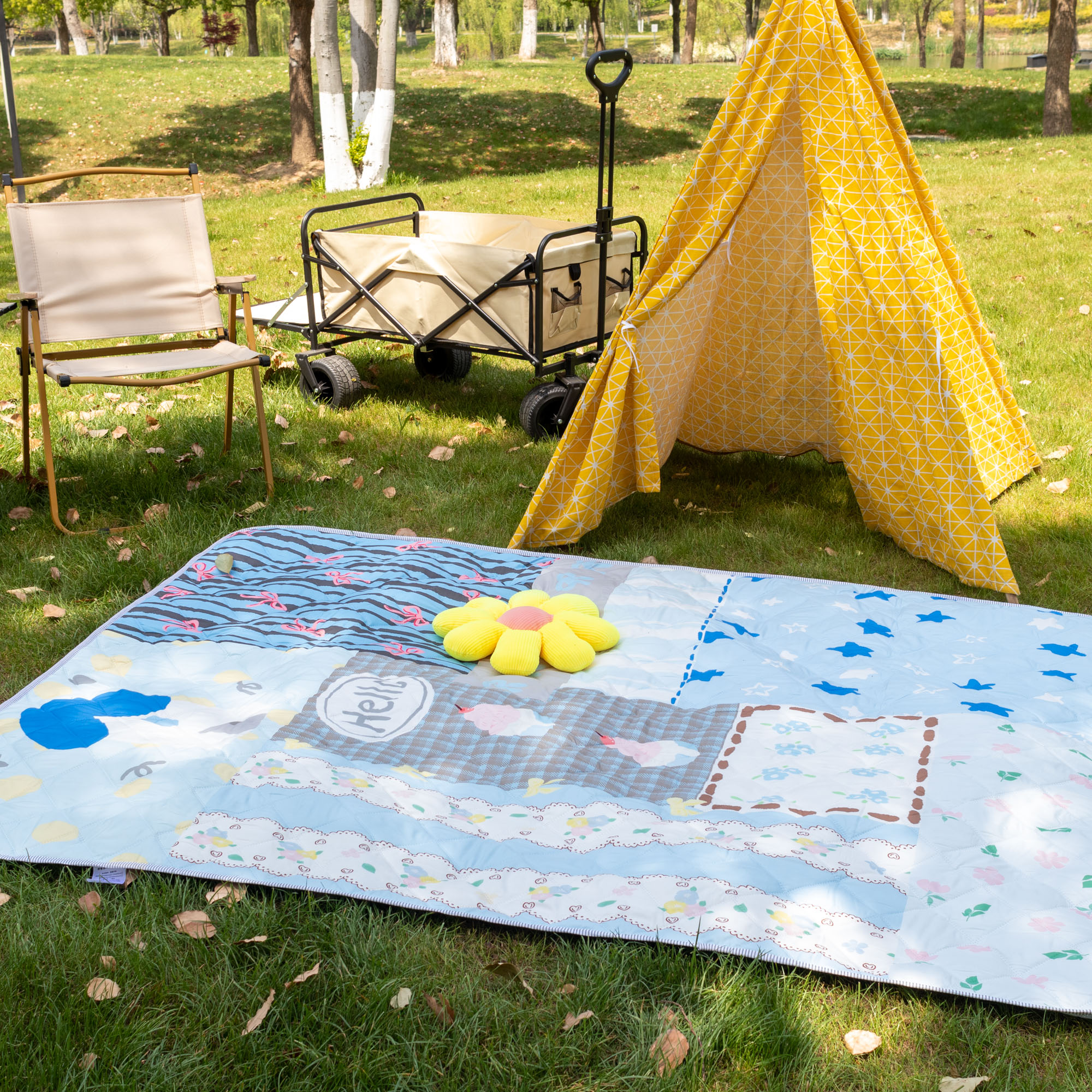 欣宜家纺 2025新款铝底防水野餐垫防潮宝宝地垫爬爬垫露营垫帐篷垫 橘子酱