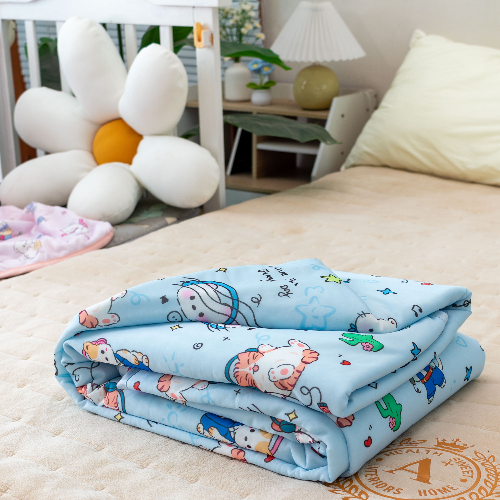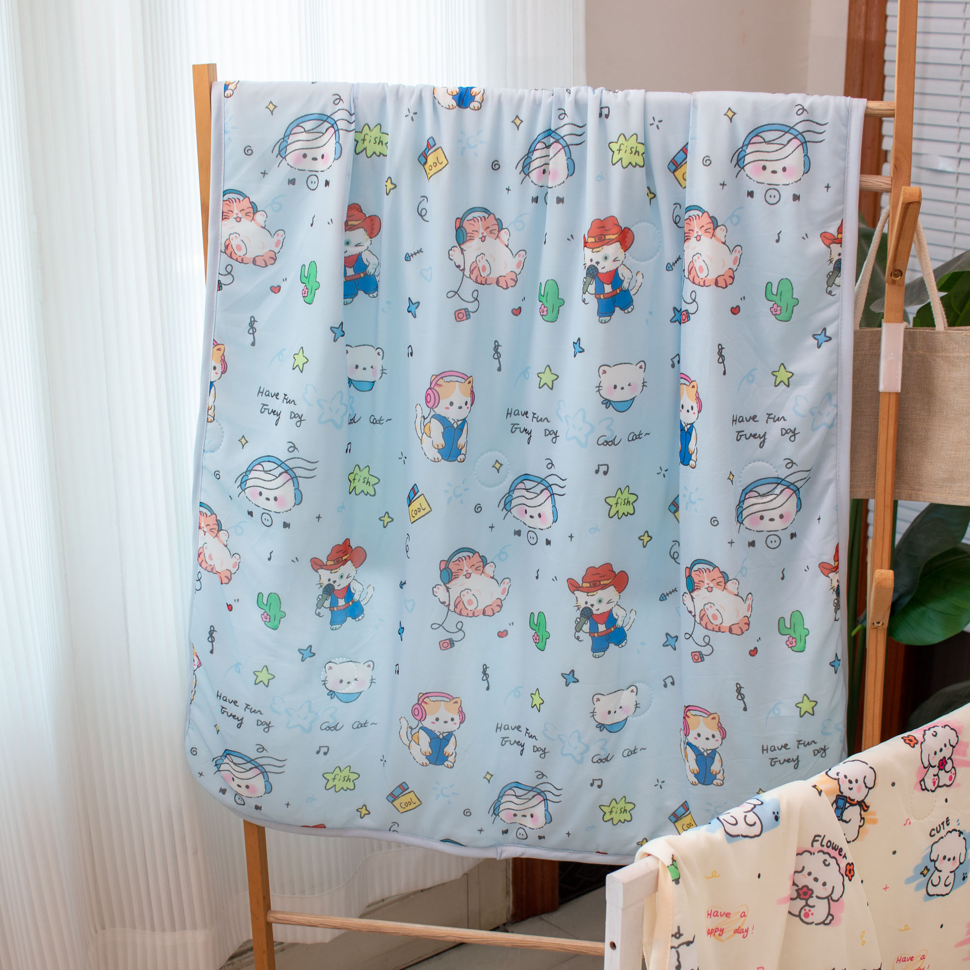 被子 > 夏被 > 欣宜家纺 2025新款母婴级卡通冰淇淋夏被夏凉空调冰丝薄款被芯可机洗凉感丝冰皮被子 被子被芯 摇滚猫