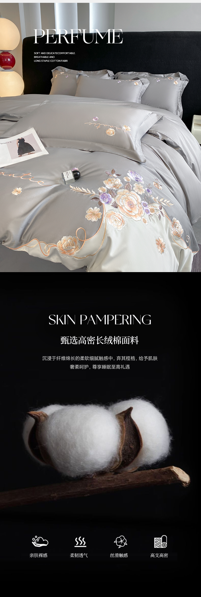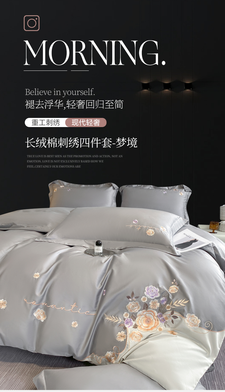 当前位置: 91家纺网 > 商品网购 > 床品套件 > 四件套 > 全棉普通四件套 > (总)欣宜家纺 2025新款纯棉全棉长绒棉刺绣绣花高端礼盒四件套-梦境